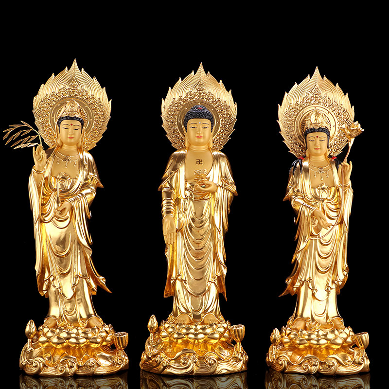 Тайваньская паста ручной работы. Золотые три святых стенда западного амитабха Гуаньян Бодхисаттва Будда Статуя поклоняется домашним использованию для буддийских украшений