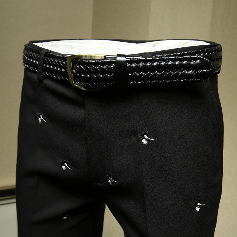 Черные штаны, костюм для отдыха, с вышивкой, облегающий крой, в корейском стиле