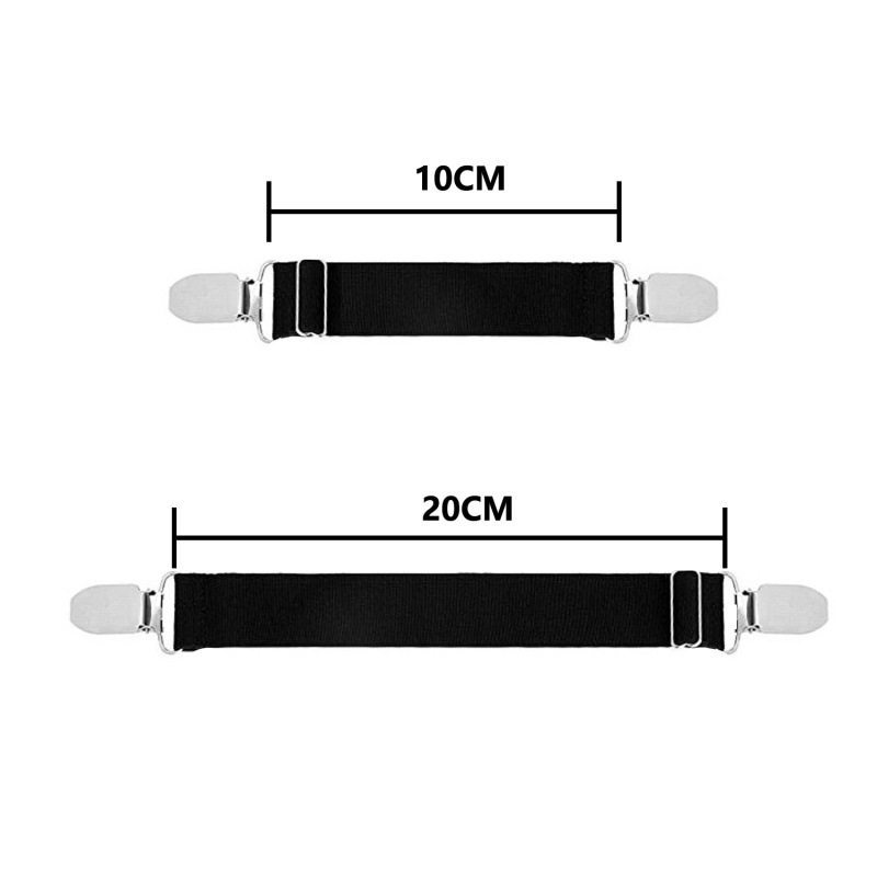 Длина: 10—20 см, регулируемая (листы для предотвращения бега, зажим для крепления чехла дивана, противоскользящий ремень для штанин, наколенники и т. д.)