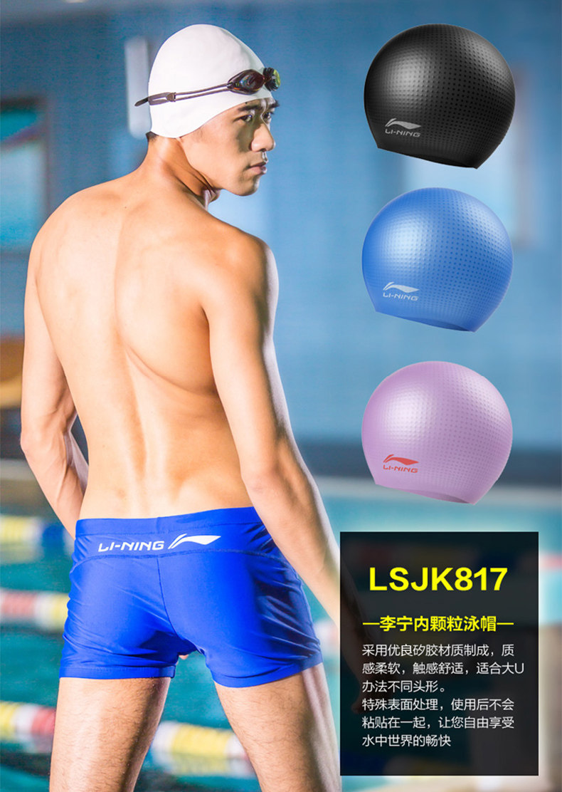 Li Ning, водонепроницаемая нескользящая комфортная плавательная шапочка для плавания