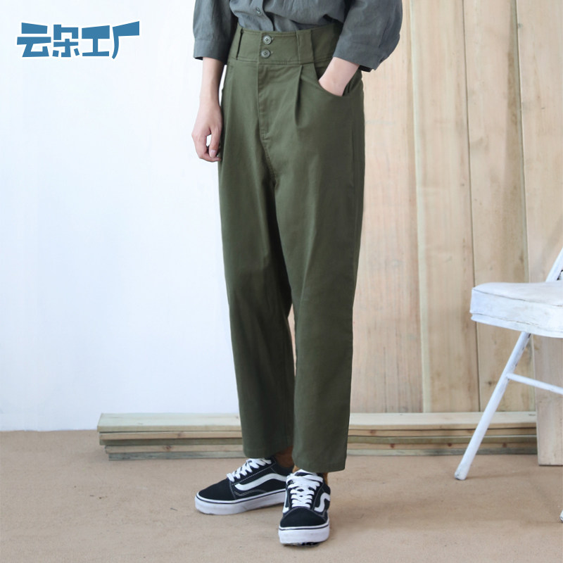 云朵工厂 Штаны для школьников, высокая талия, по фигуре, осенние