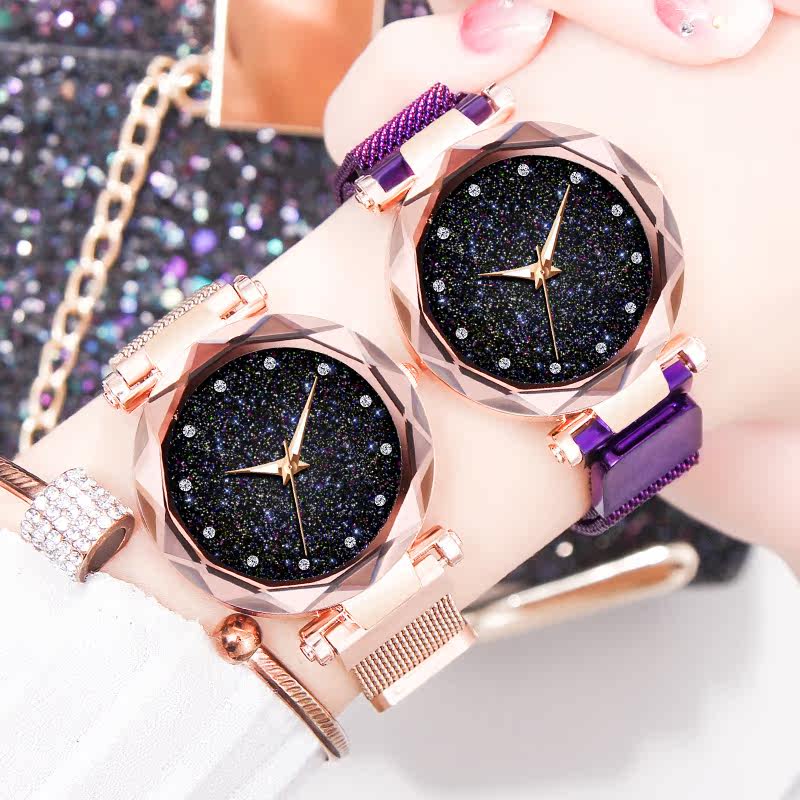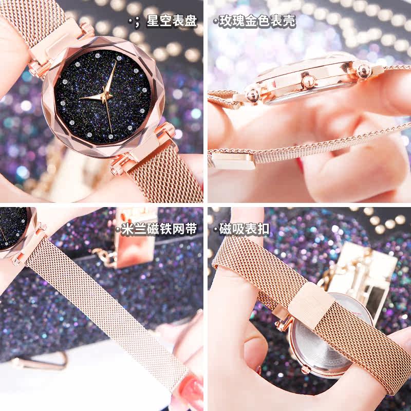 Водонепроницаемые модные швейцарские часы, звездное небо, женские часы для школьников и студентов, 2020, в корейском стиле, простой и элегантный дизайн, популярно в интернете