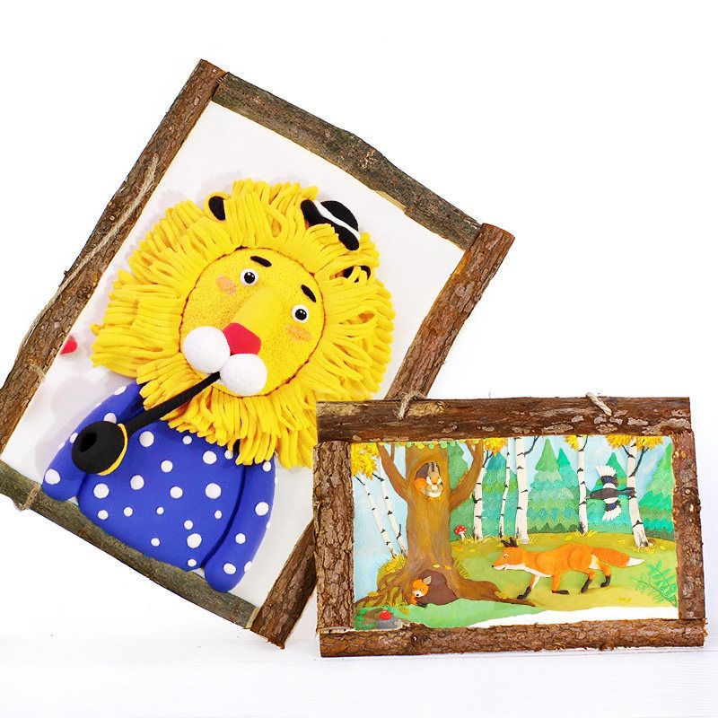 Детская фоторамка, деревянная глина, глиняная роспись, DIY, детская поделка своими руками, со снежинками