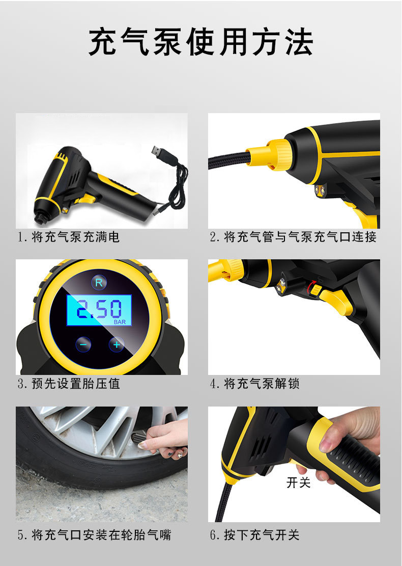 Беспроводной портативный воздушный насос, универсальное электрическое колесо для автомобиля, шины