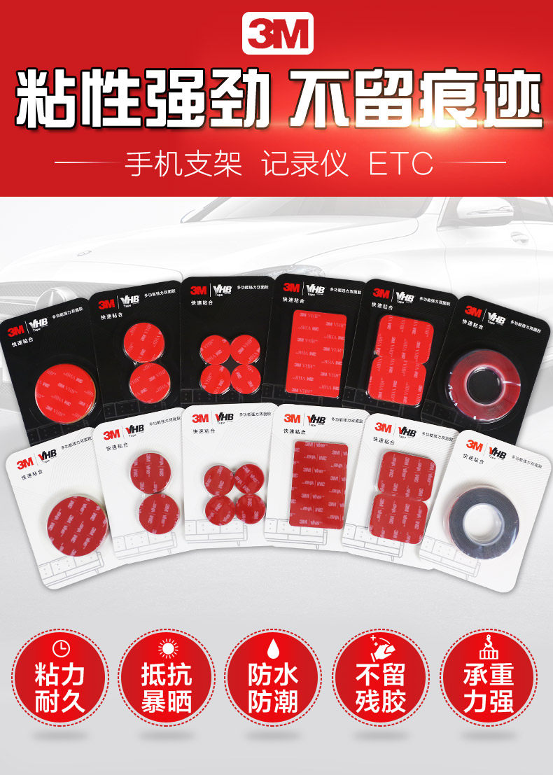 3M Мощный двусторонний скотч, клейкий регистратор, не оставляет следов