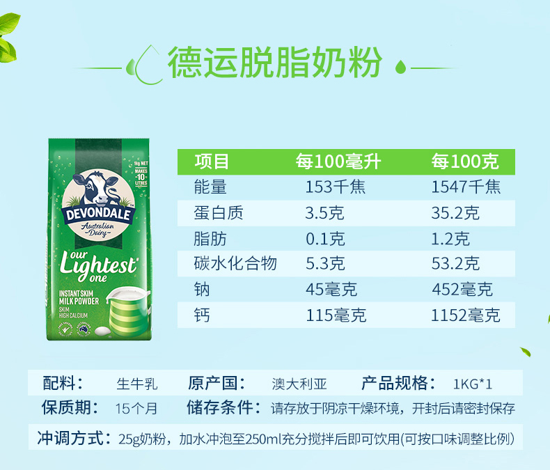 Австралия импортированный немецкий -дали -фат для взрослых молока порошок с низким содержанием фарта с высоким содержанием кальциум -фитнеса.