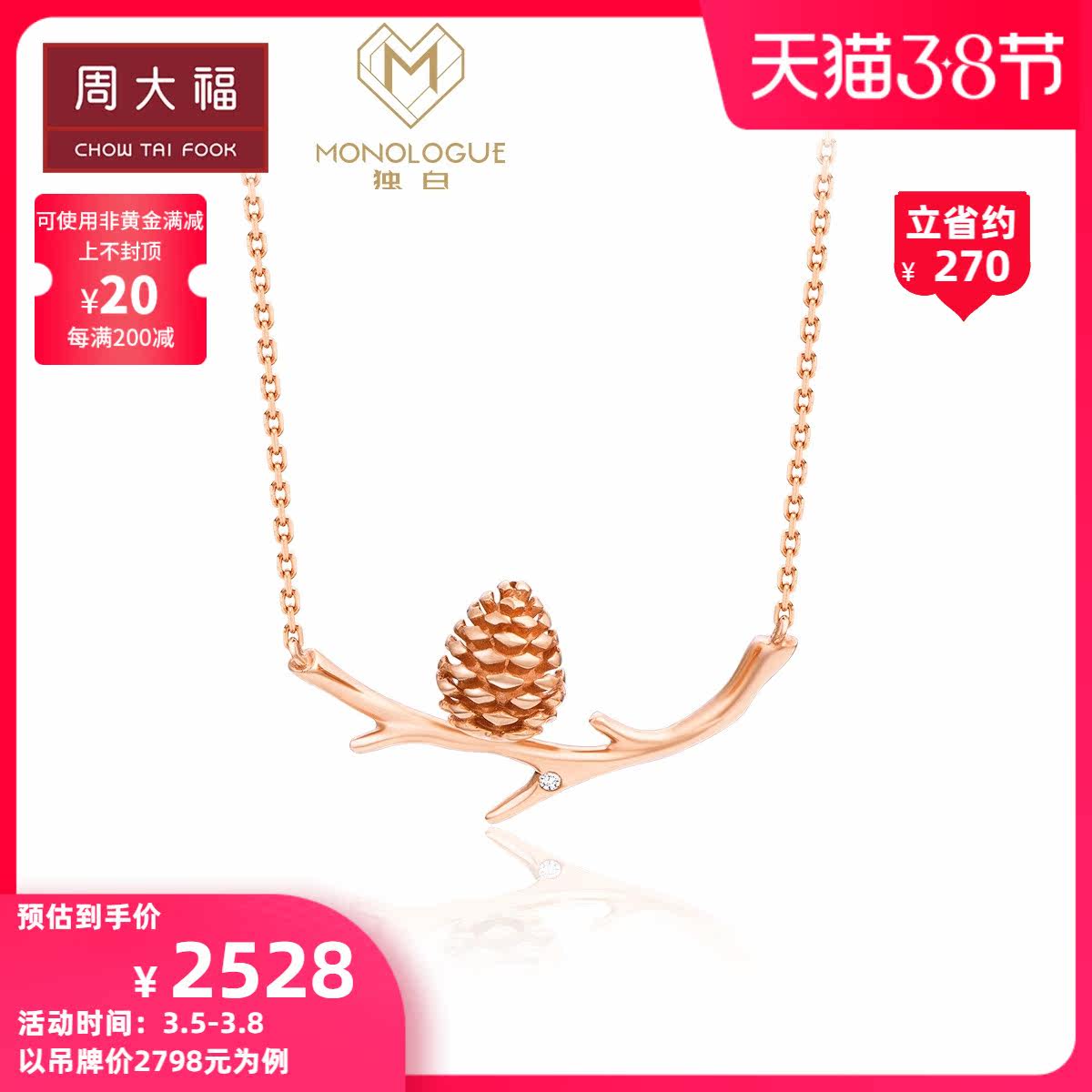 周大福 Монолог монолог ветвь сосна конус 18K золотой бриллиант подвеска мада 1356