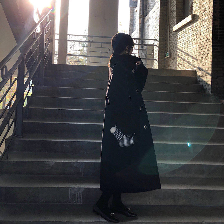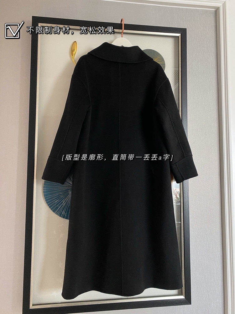 Черное двусторонное кашемировое длинное элитное шерстяное шерстяное пальто, в корейском стиле, средней длины, городской стиль, свободный крой