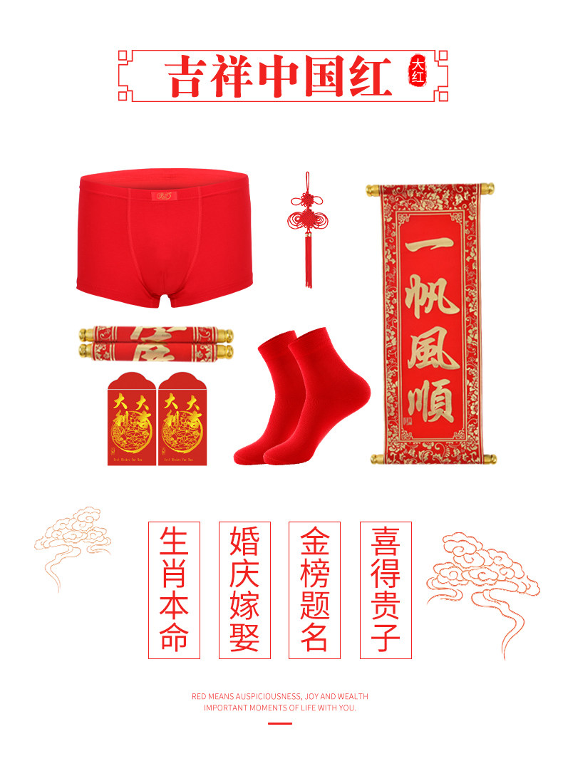 浪莎 Трусы, штаны, красный оберег на день рождения, хлопковое нижнее белье, для влюбленных