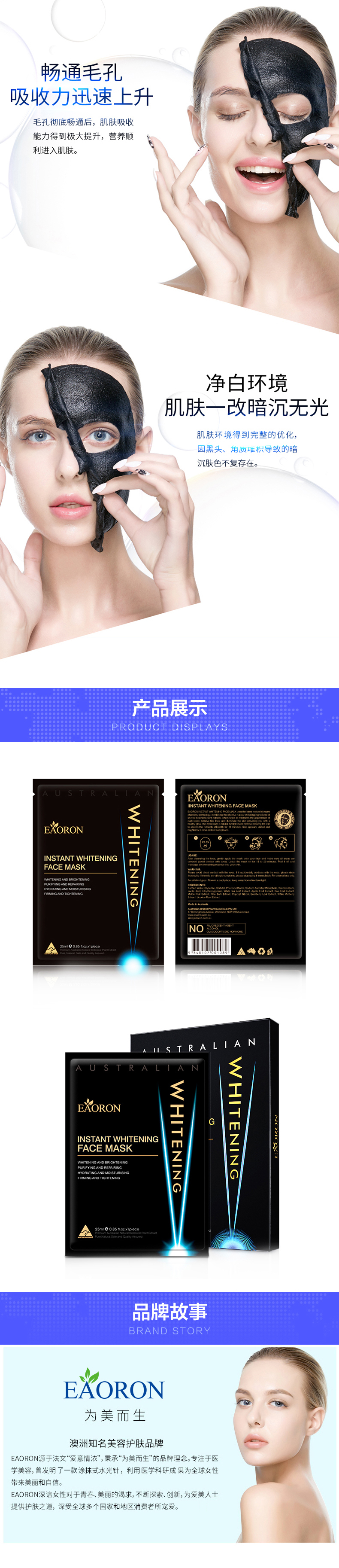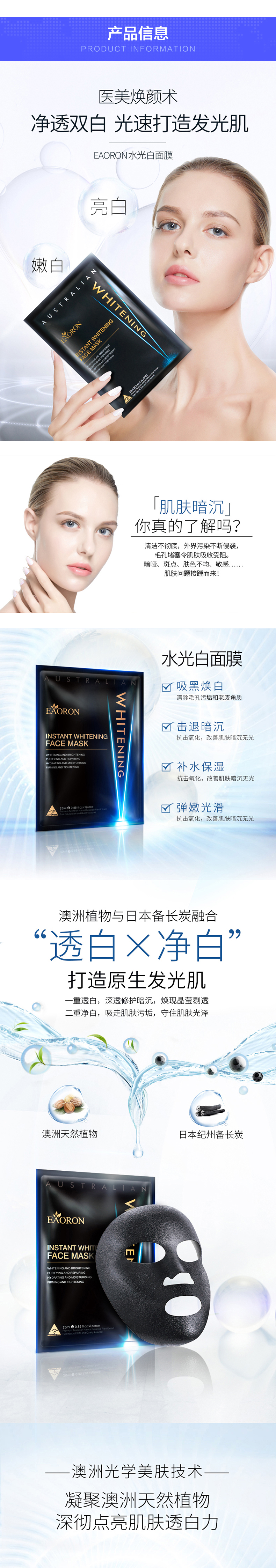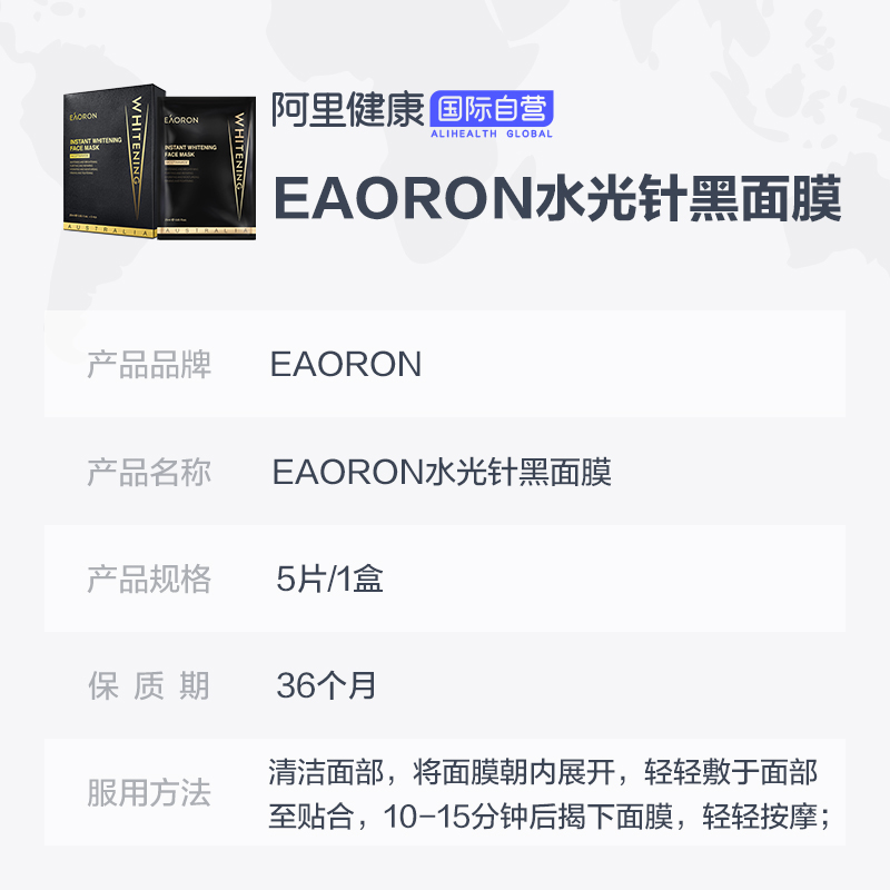 [Taobao] Австралия Eaoron Water Light, легкая блестящая черная черная маска Адсорбция, чистые поры, украшенная вода, вода и отбеливание 5 таблеток