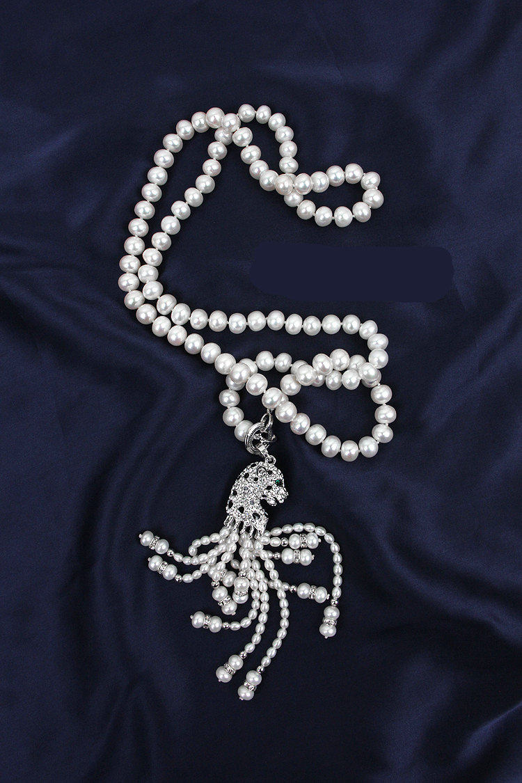 Модный натуральный длинный свитер из жемчуга, ожерелье с кисточками, подвеска, аксессуары
