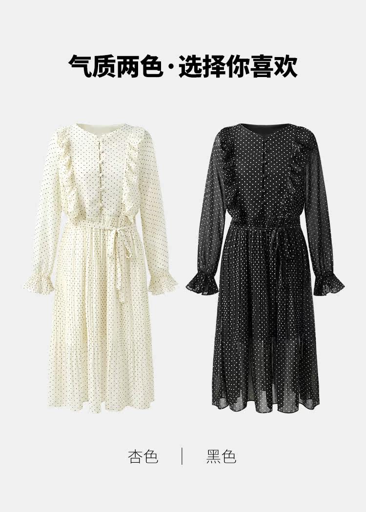 艾米恋 Демисезонное платье, ретро длинный шифоновый базовый мегафон, V-образный вырез, средней длины
