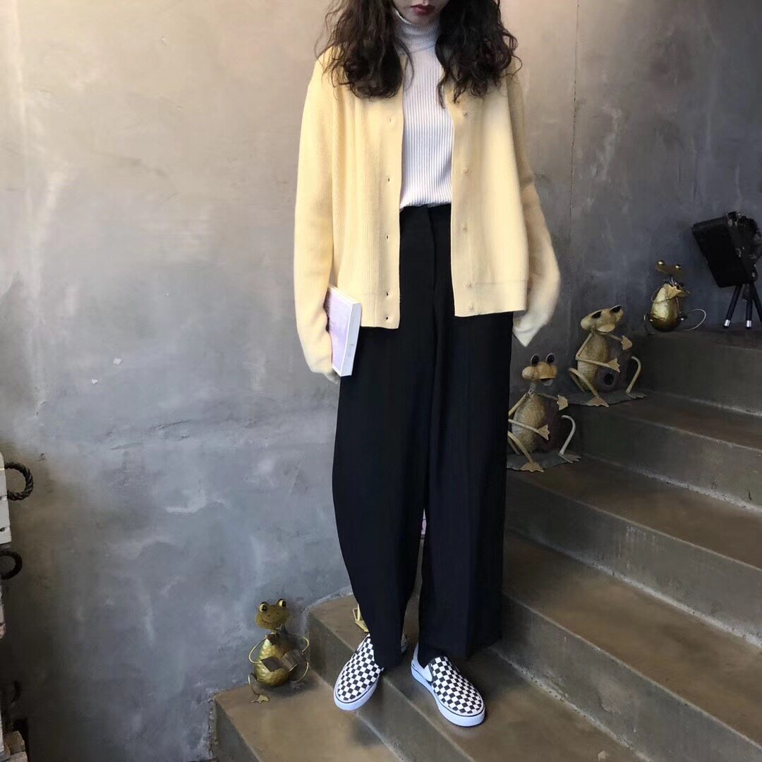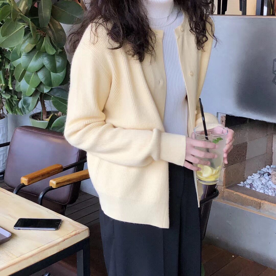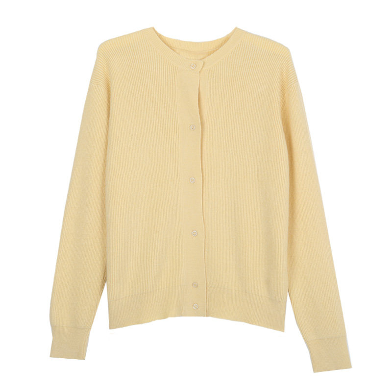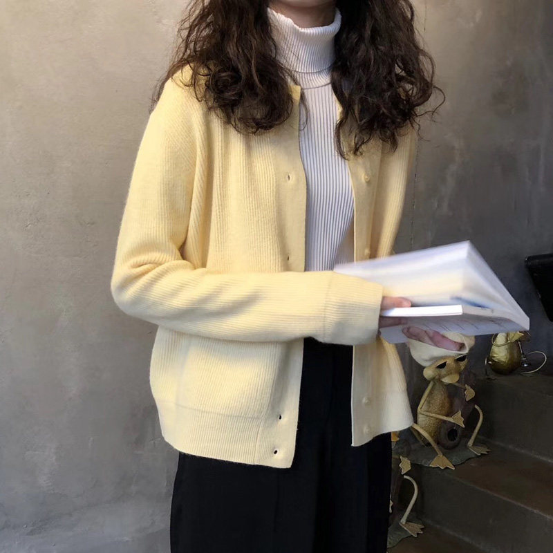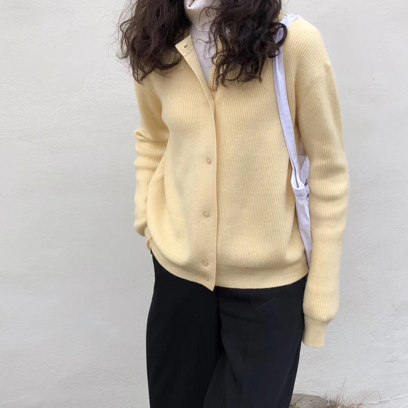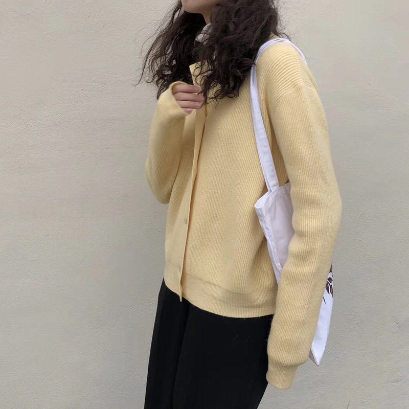 Брендовый демисезонный кардиган с круглым воротником, желтый свитер, куртка, в корейском стиле