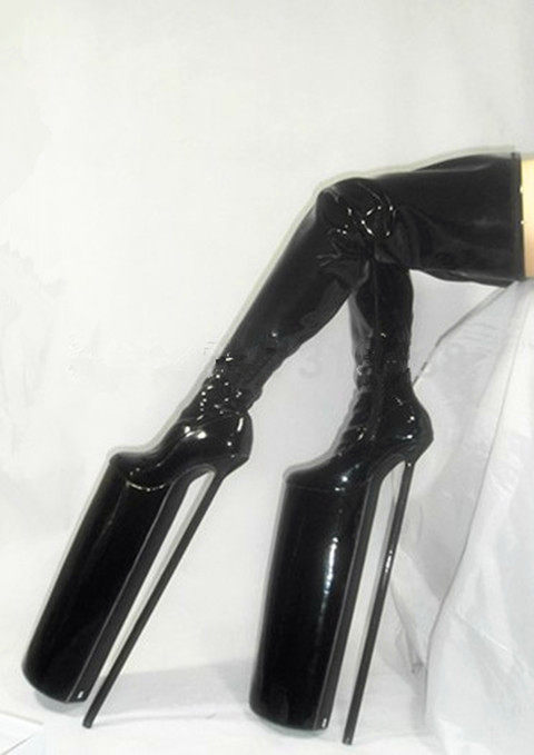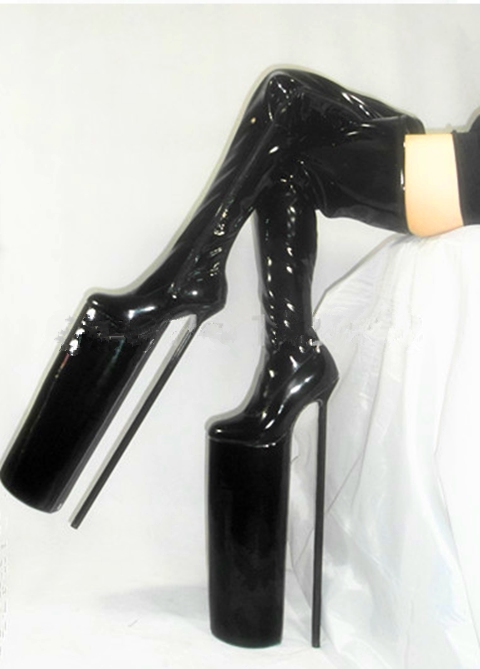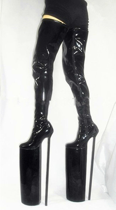 Сексуальная и простая черная кожаная кожа PU Сексуальное небоскреб Super High -Heald Over -Knee High Boots Boots Boots x001