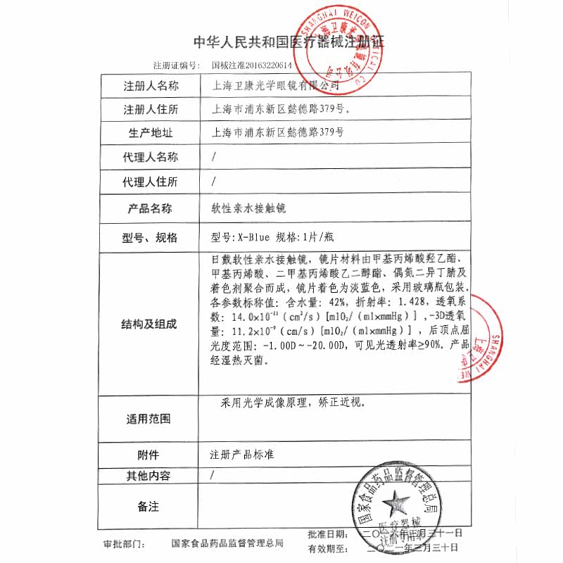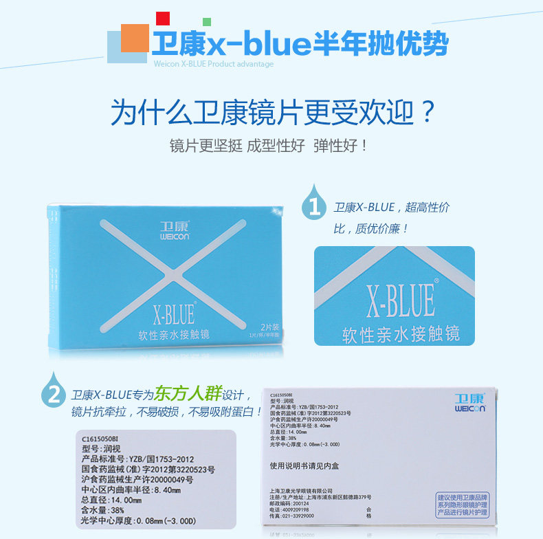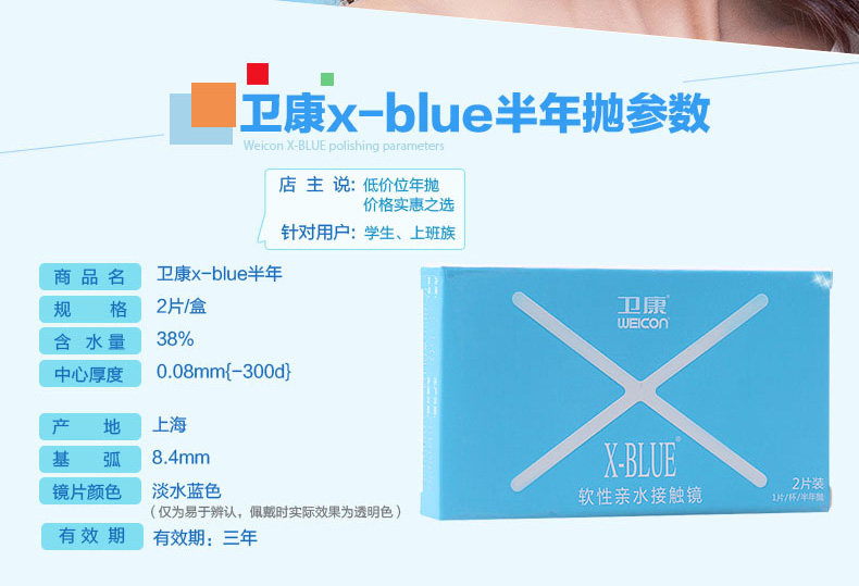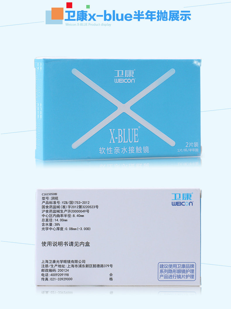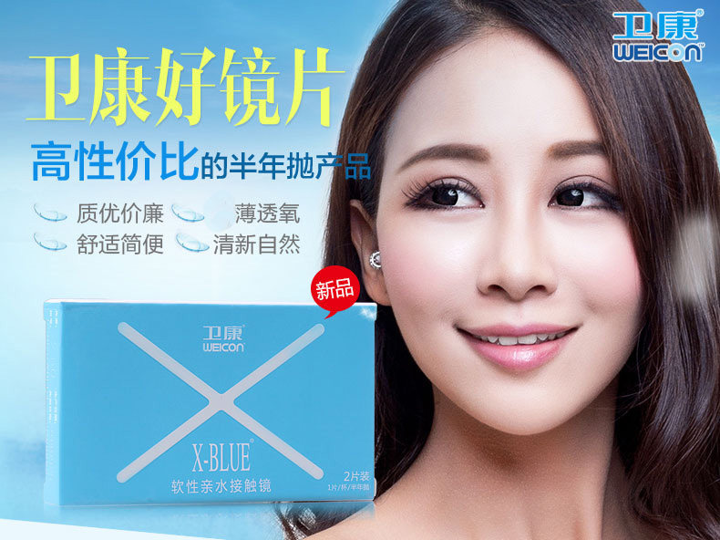 卫康 Невидимые бокалы миопии полгода, 2 куски X-Blue Hydraulic, прозрачный Wei Kang Invisible Eye Flagship Store