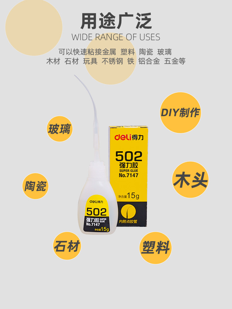 Deli 502 Клей мощный универсальный подлинная подлинная 520 высокая вязкость липкая большая бутылка быстрое кинематическая деревянная палка, клейкая обувь и обувь, специальная трехсекундная быстро -пластиковая супер маленькая ветвь оптом