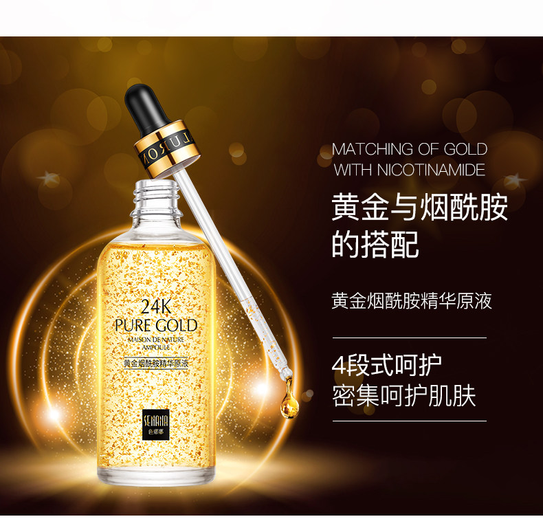 Золотая увлажняющая осветляющая отбеливающая сыворотка с гиалуроновой кислотой, с мочевиной в составе, осветляет кожу, сужает поры