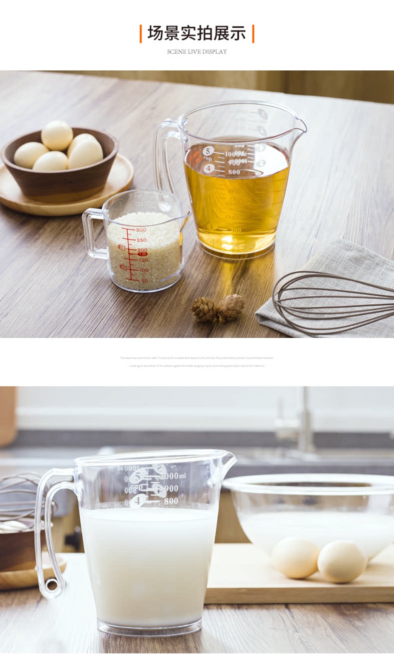 Японская импортная пластиковая измерительная кружка со шкалой, прозрачная вместительная и большая чайная чашка для домашнего использования, 1000 мл