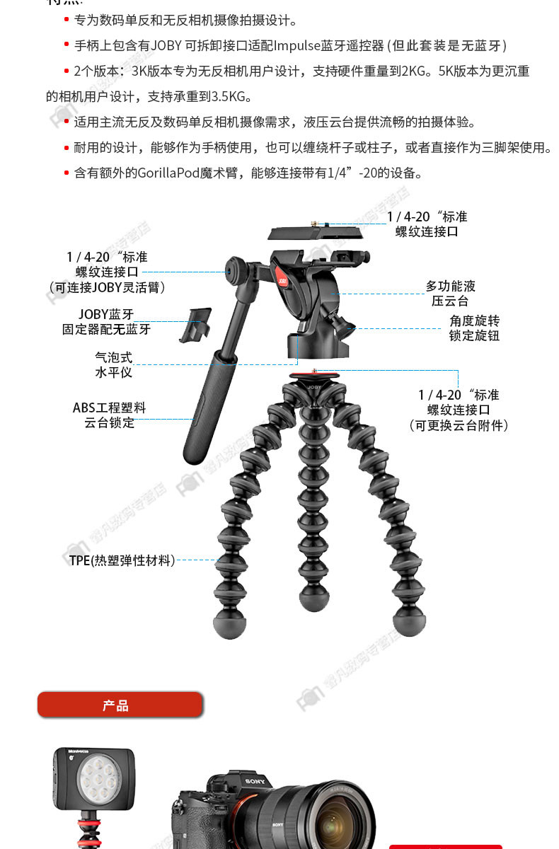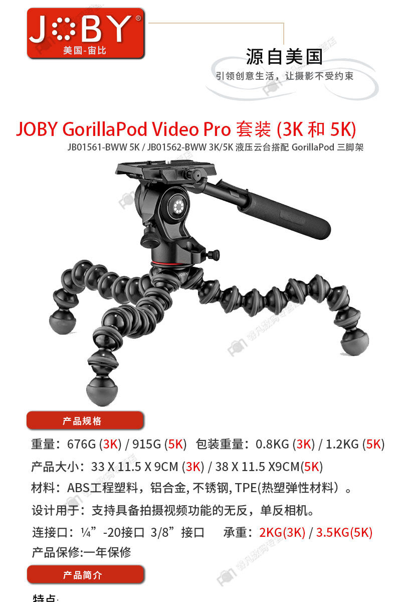 Joby Shanbi JB01561/JB01562 3K/5K Микротетическая фотография Камера Камера Тристоронний символ содержит гидравлический жонбание