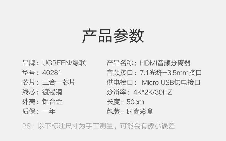 绿联 HDMI Audio Seperator 8K/60 Гц Ультра -High -Definition Optical Fiber 3.5
