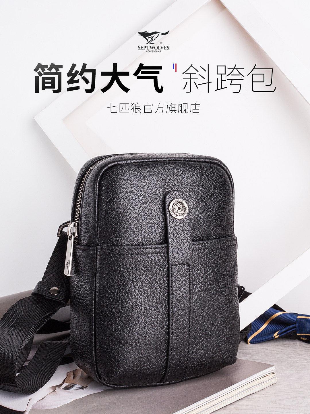 Septwolves, нагрудная сумка, кожаная сумка на одно плечо, универсальная вместительная и большая поясная сумка для отдыха, из натуральной кожи