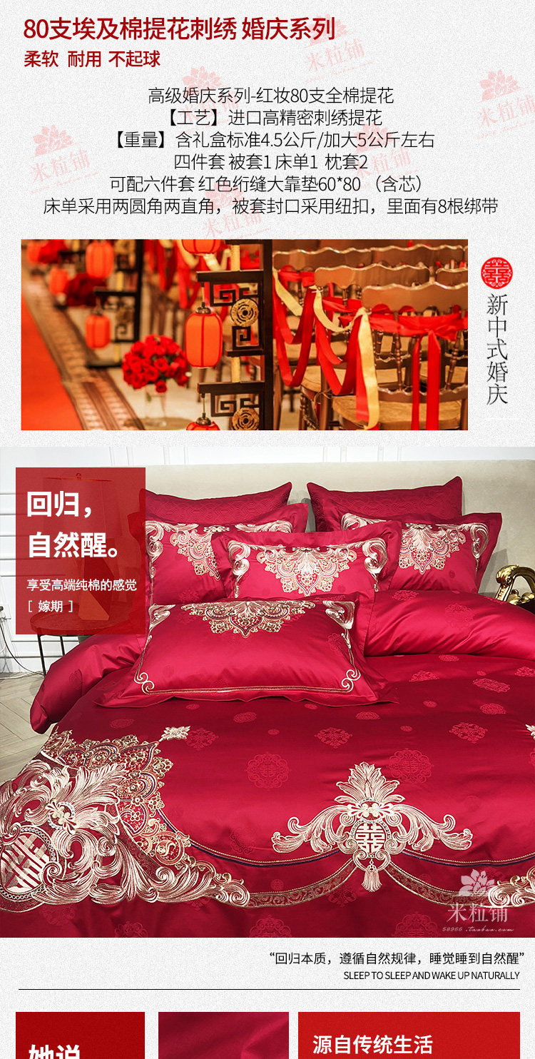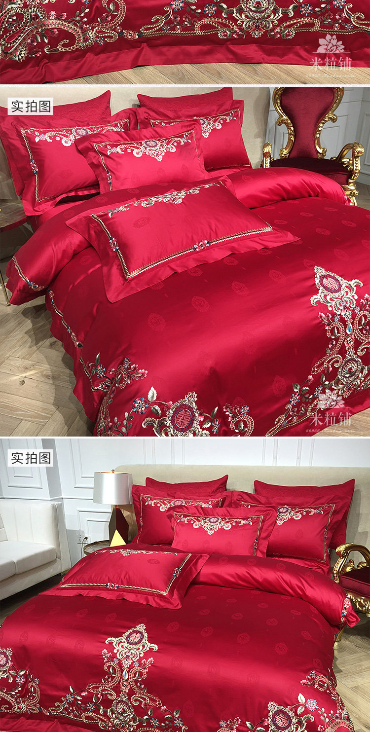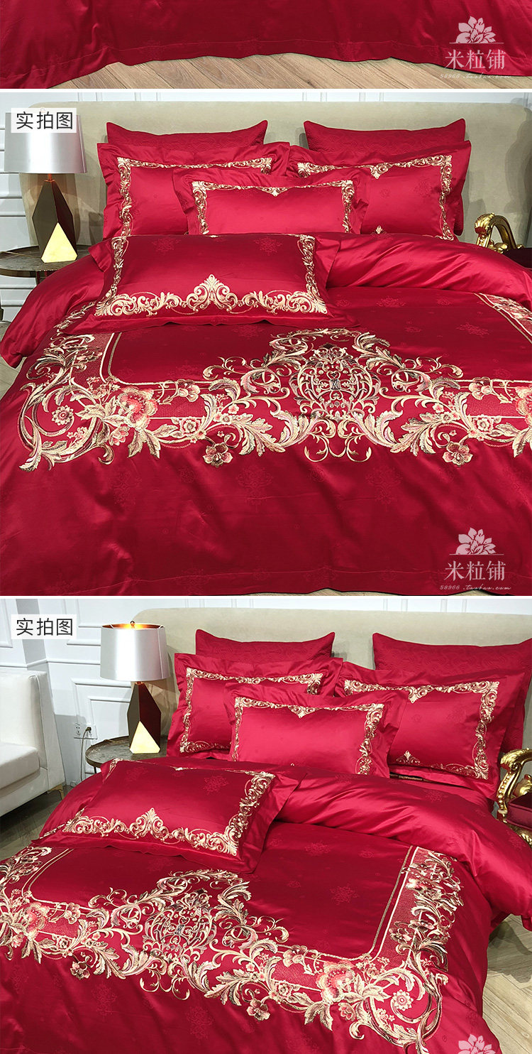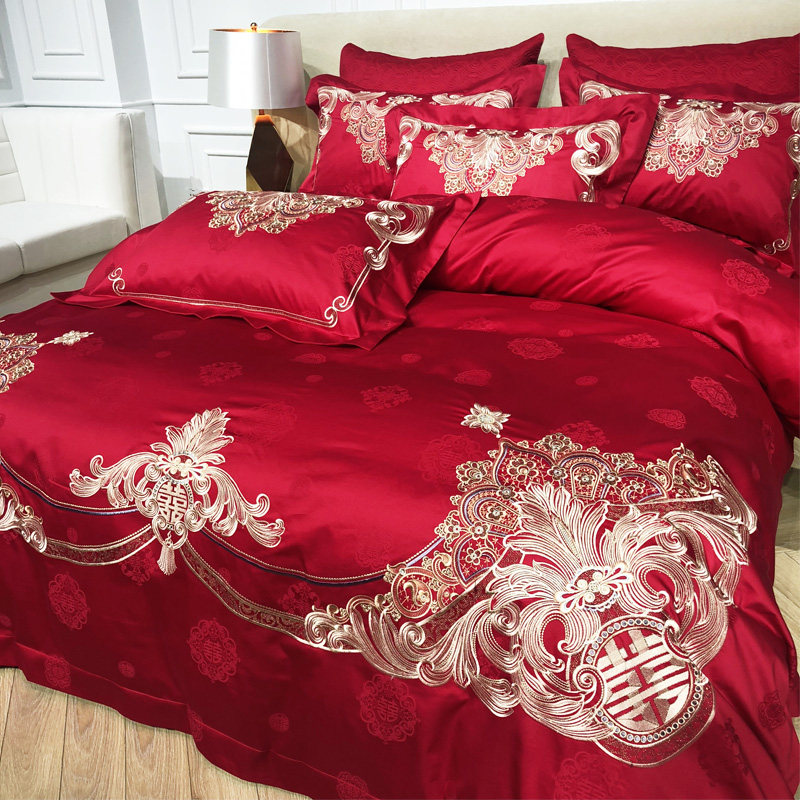 Элитный красный хлопковый комплект, пододеяльник, 80 шт, 4 предмета, постельные принадлежности, с вышивкой