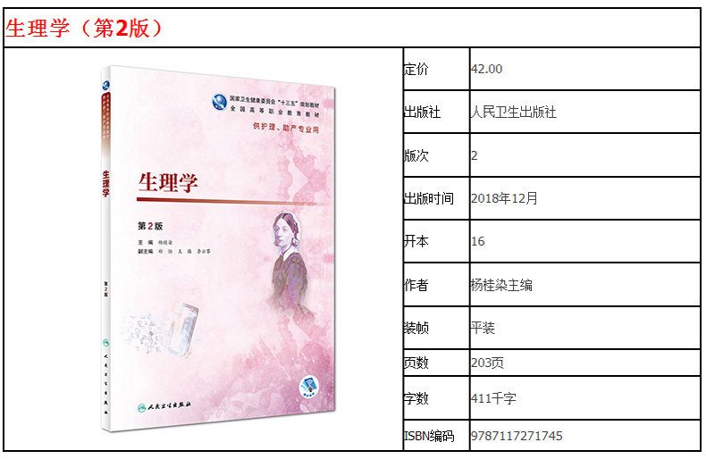 Подлинная физиология 2 -е издание Национальное высшее профессиональное образование 13 -е пять -лечебные учебные материалы № 4 Высокий профессиональный колледж медсестры Ян Гиран для высокой профессиональной комиссии и Высшей комиссии по многочисленной профессиональной издательской доме