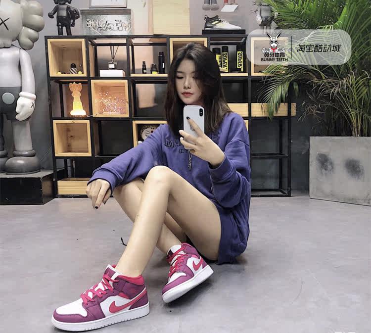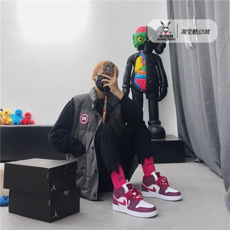 Air Jordan 1 середина AJ1 Помогите Bai Zi Bai Pink Day Valentine's Limited 555112-661