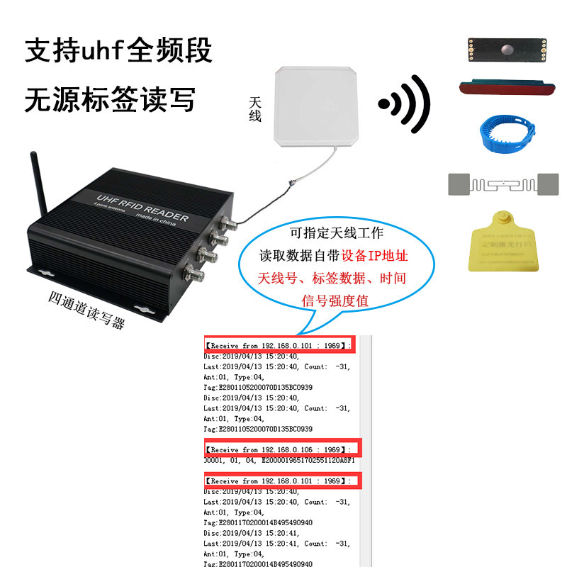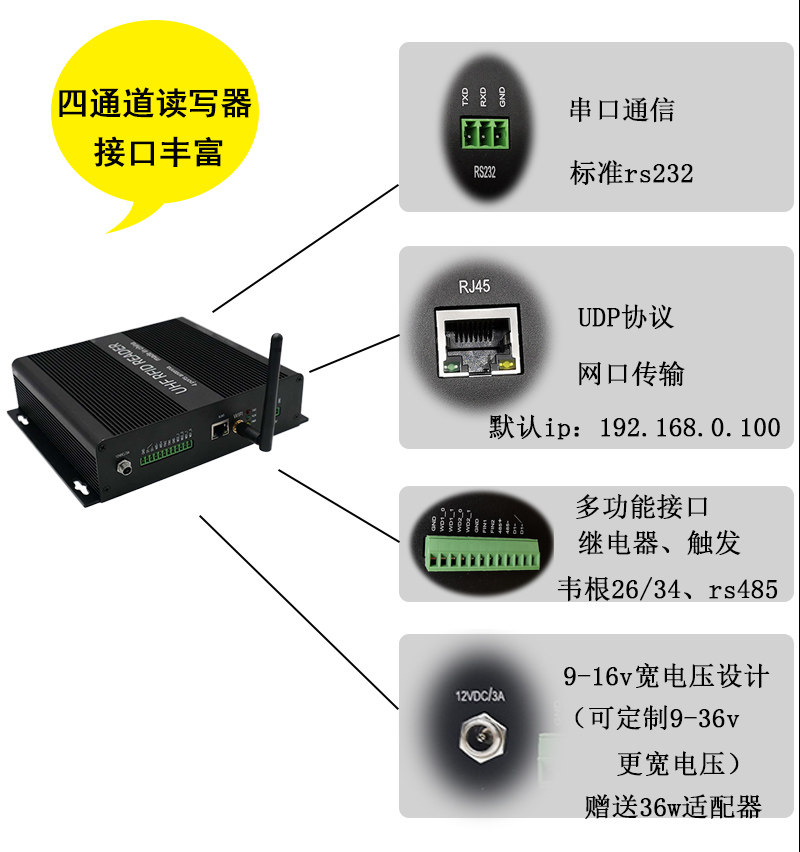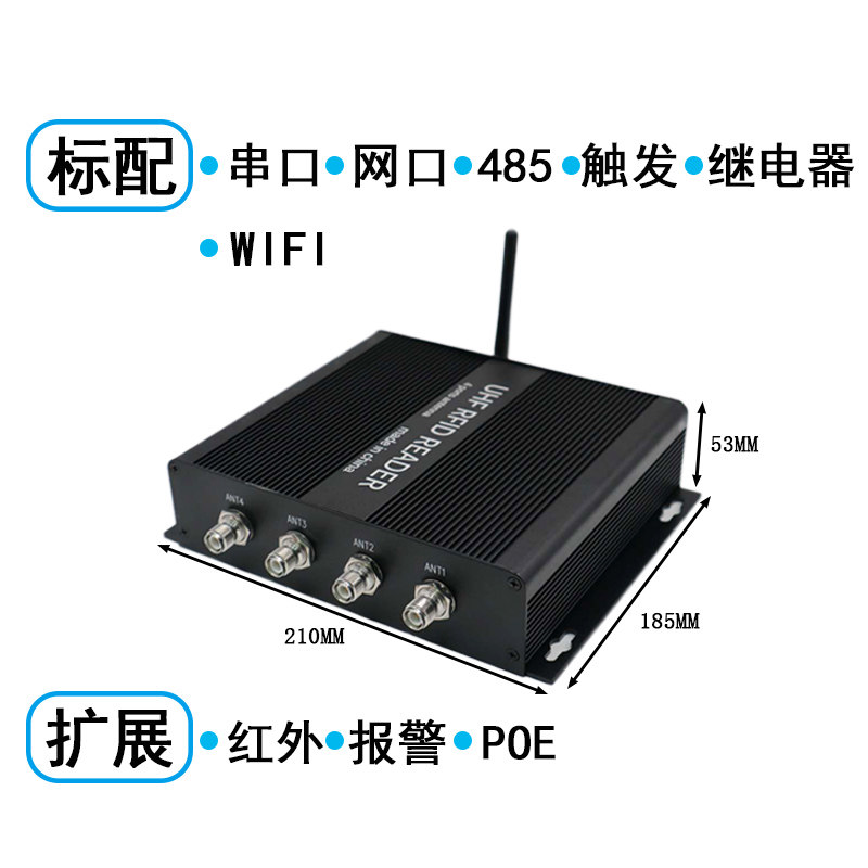 RFID Reader четырехканальный Wi -Fi Communication 915M Ultra -High -Crequency Four -Channel Asset Management RFID Reader Carder