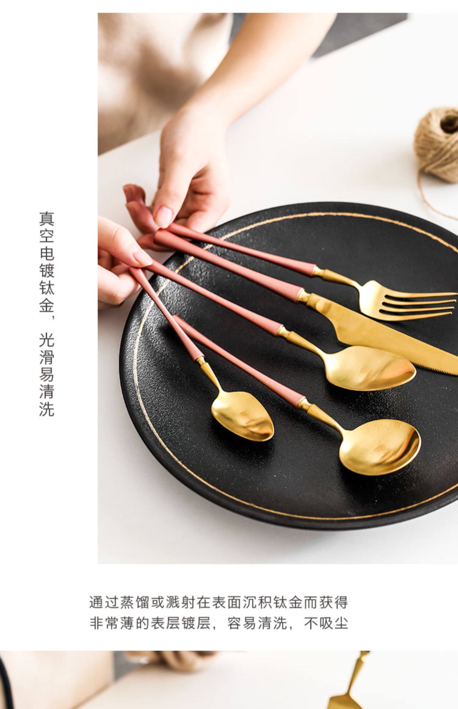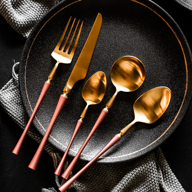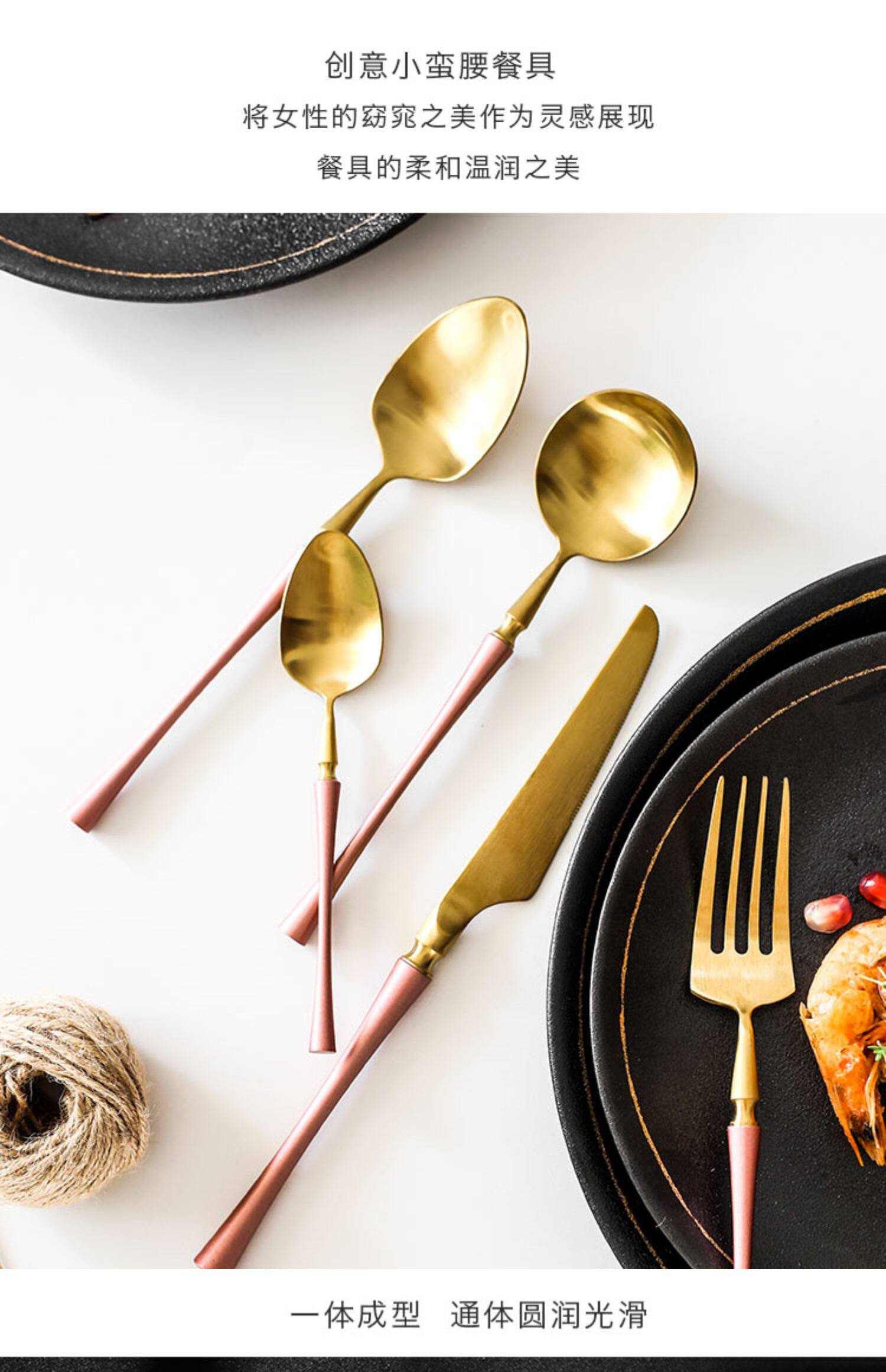 Креативный комплект из нержавеющей стали, розовая посуда, ложка, европейский стиль