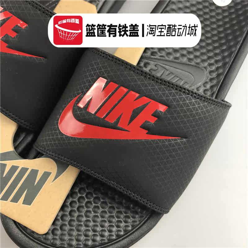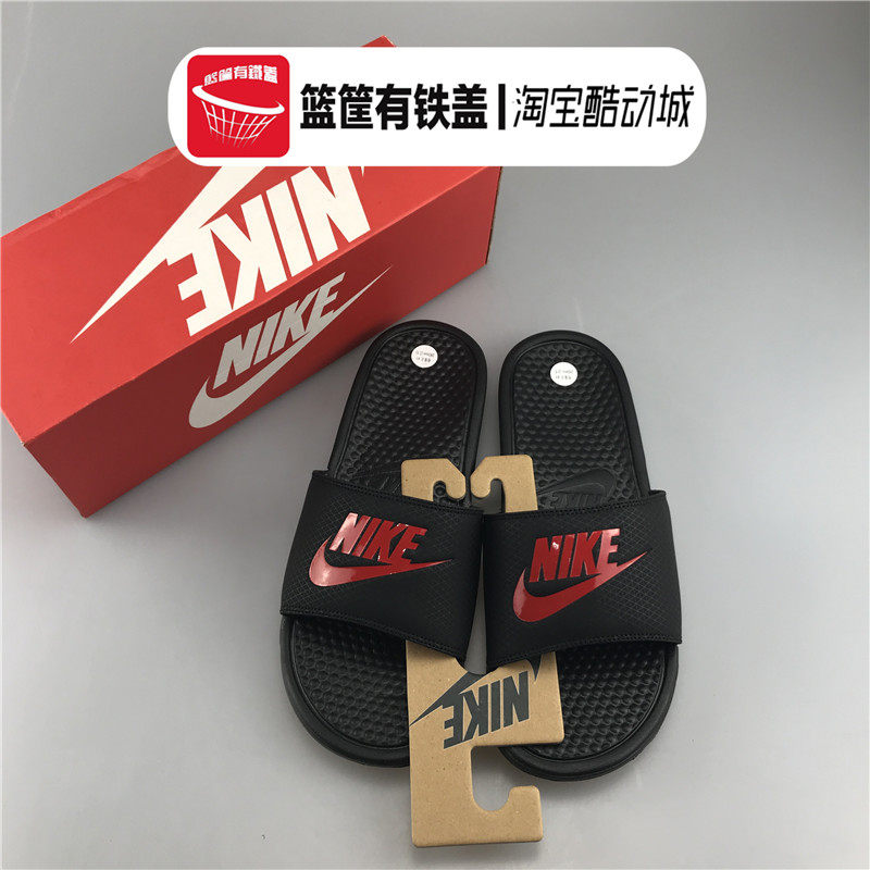 Подлинный Nike Benassi JDI Black Red Blaging Beach Shoes Slote 343880 CJ4608 631261
