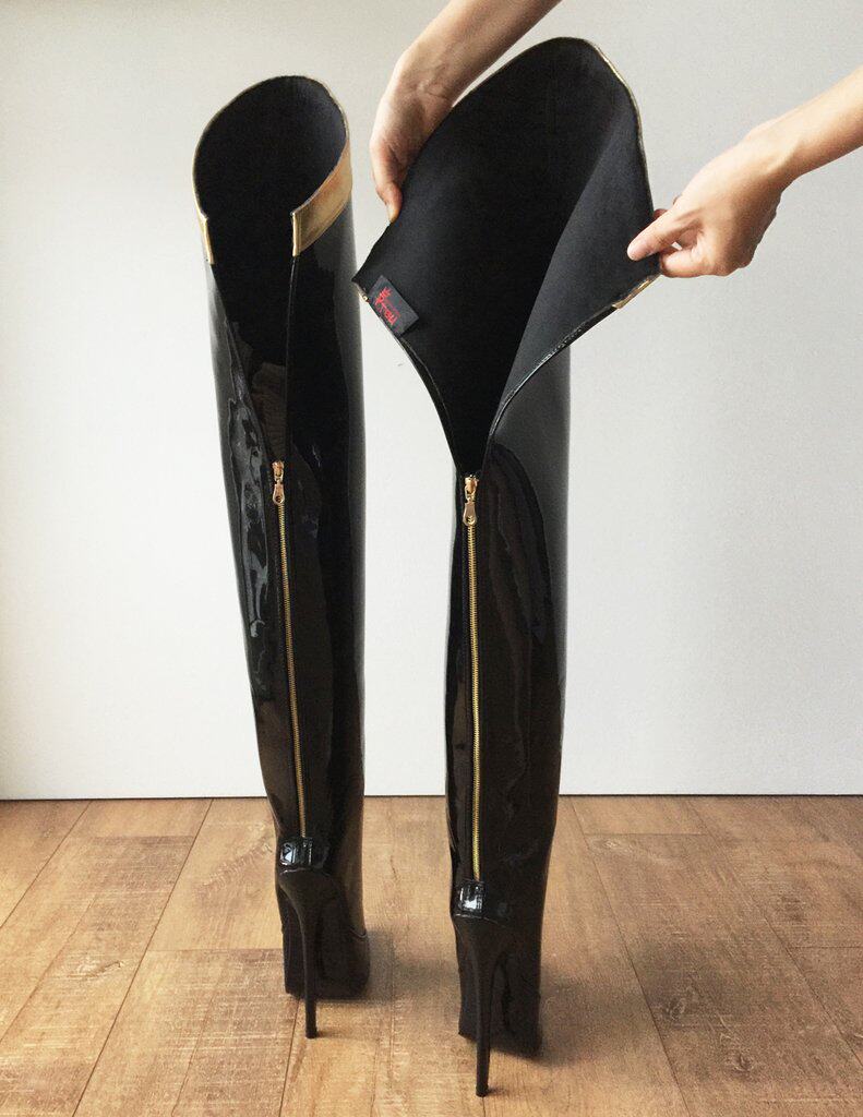 Европейские и американские новые зимние утягивающие сапоги выше колена с тонкими штанинами и золотыми краями, черные туфли на шпильке с острым носком и длинные ботинки V601