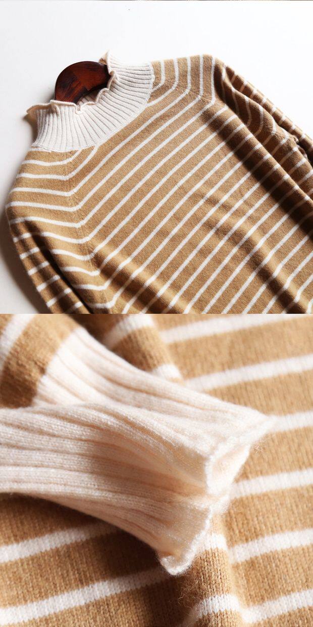 Демисезонный шерстяной трикотажный базовый свитер, высокий воротник, свободный крой