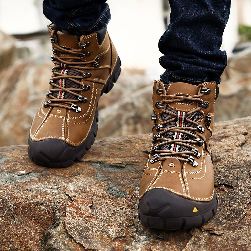 Зимняя уличная походная обувь для мужчин с бархатной и толстой кожаной дорожной обувью, спортивная обувь, нескользящая водонепроницаемая мужская походная обувь