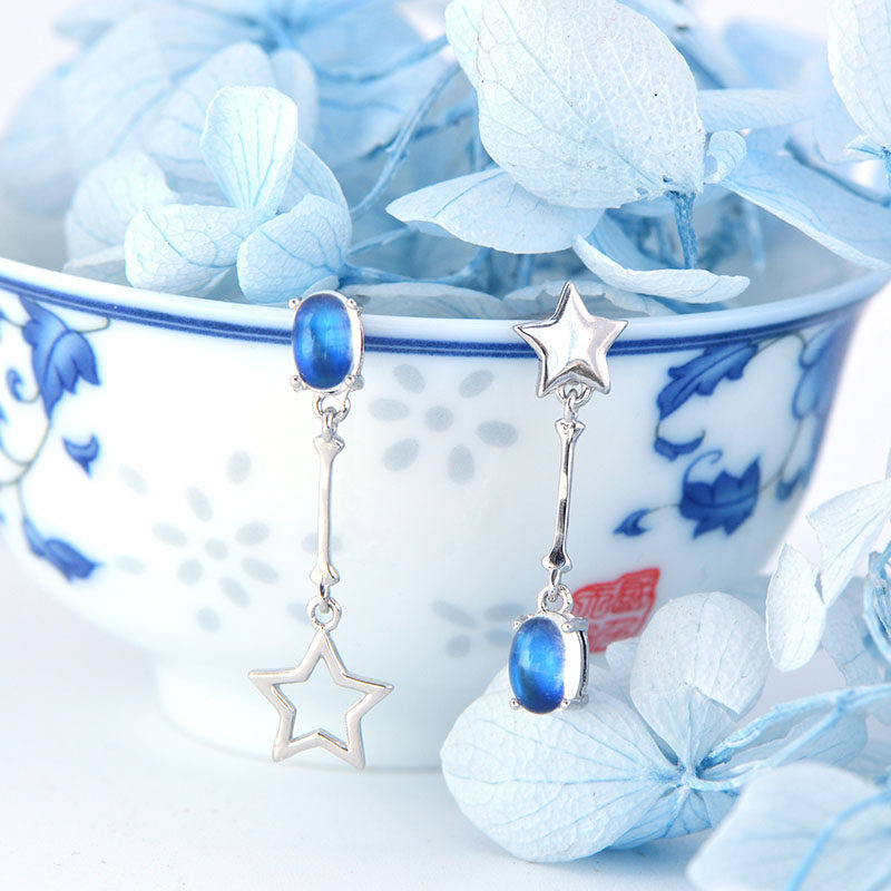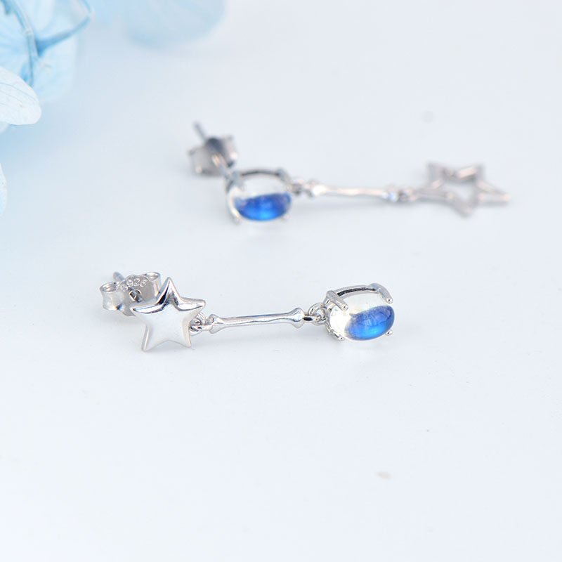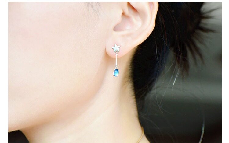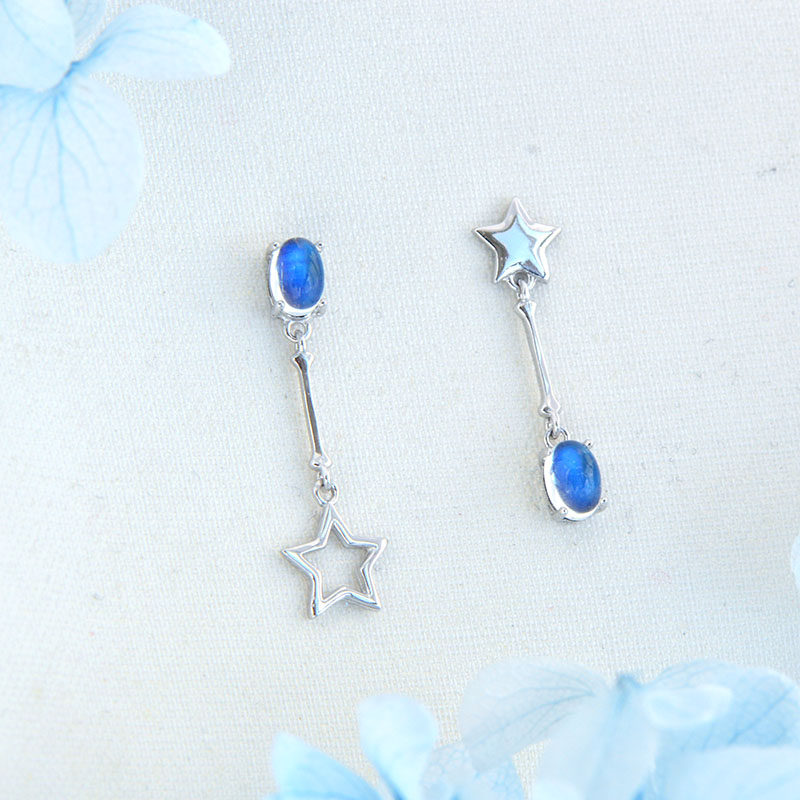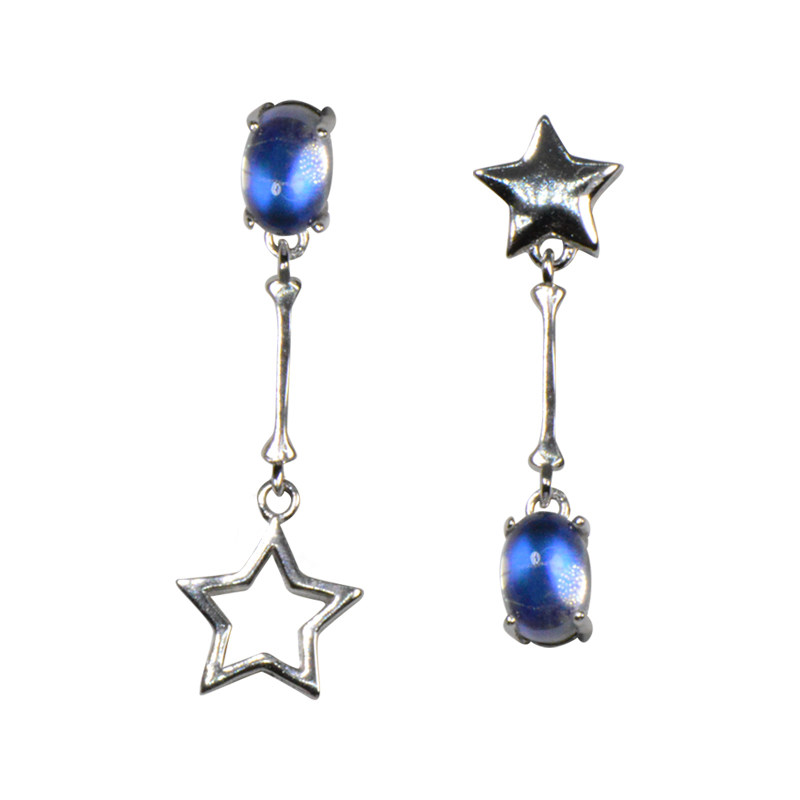 Натуральные асимметричные брендовые серьги, лунный камень, серебро 925 пробы, имитация льда, простой и элегантный дизайн