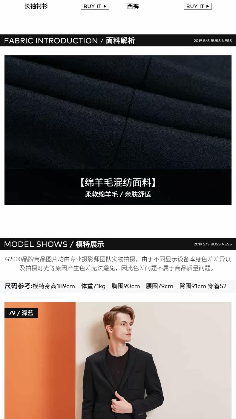 G2000 То же самое весенний и летний классический шерстяной бизнес -костюм мужской пиджак 91111518