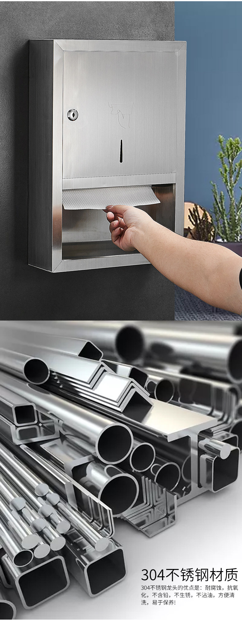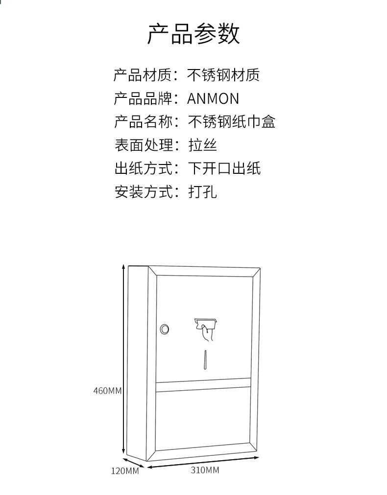 Квадратная нержавеющая сталь протирать ручная бумажная коробка стена -непрерывная не -пунша -без туалетная туалетная бумага для туалетной бумаги