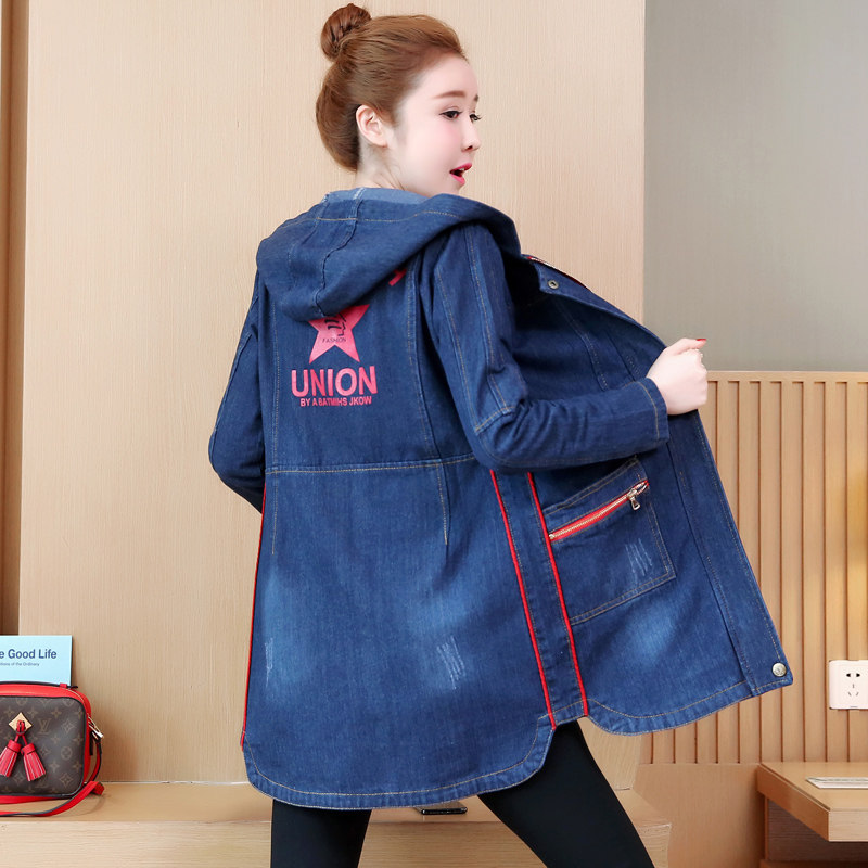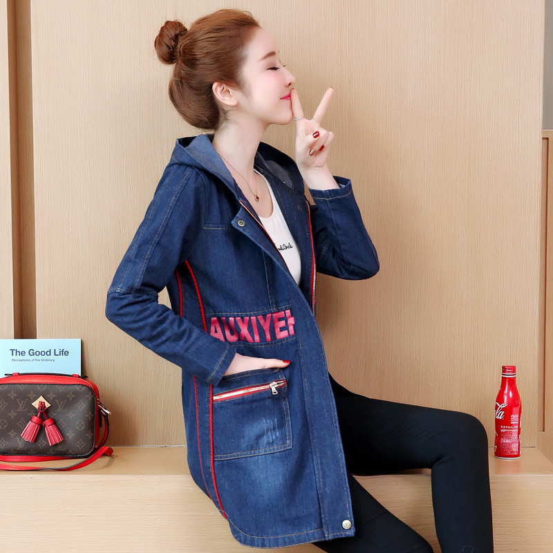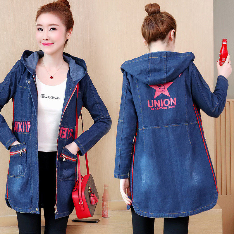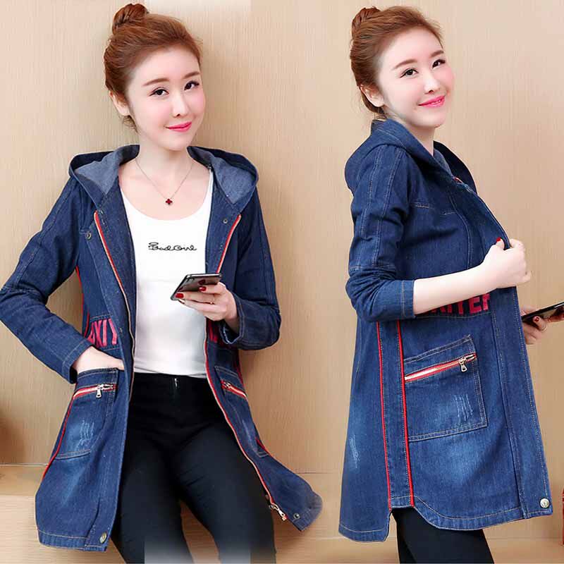Осенняя джинсовая длинная куртка, плащ, 2019, в корейском стиле, большой размер, подходит для полных девушек, средней длины