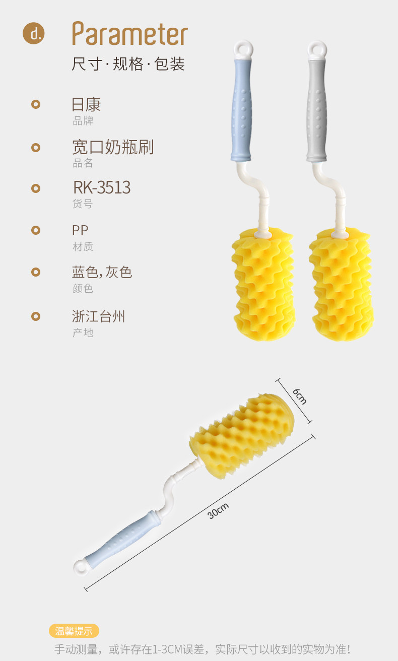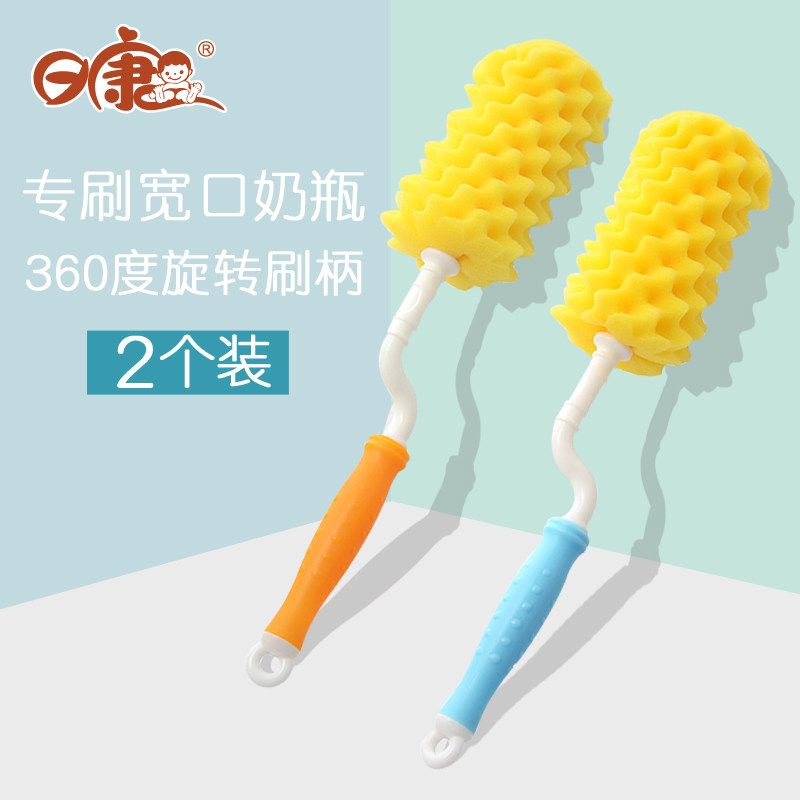 日康 Детская большая стеклянная пластиковая бутылочка для кормления, ершик для бутылочки, кисть, поролоновая щеточка, широкое горлышко, 2 шт