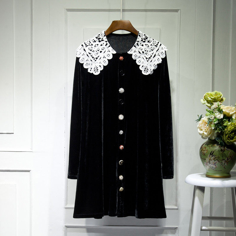 Кружевное платье, юбка, осенний черный базовый лонгслив, коллекция 2021, в корейском стиле, средней длины, А-силуэт