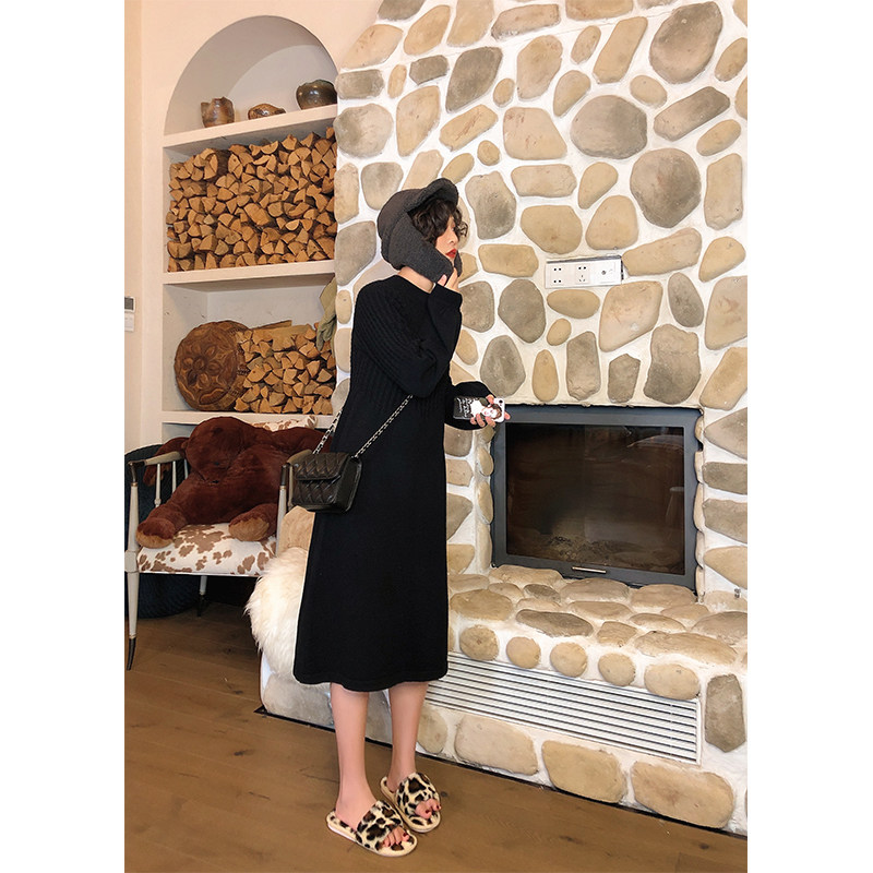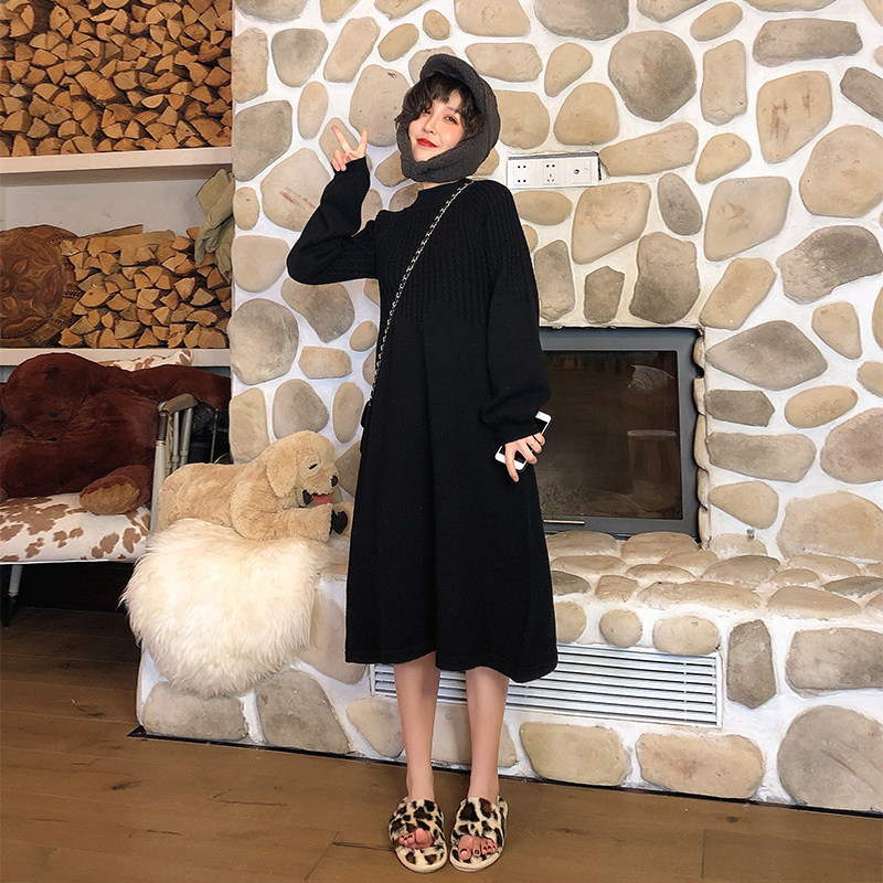 Лонгслив с круглым воротником, платье большого размера, французский стиль, оверсайз, с рукавом