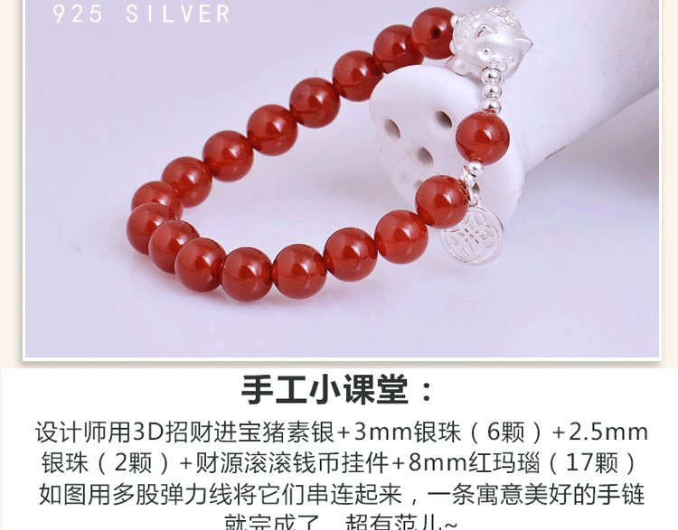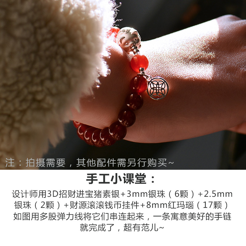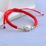 Бусины ручной работы, браслет из бисера, браслет из красной нити, аксессуар, серебро 999 пробы, DIY