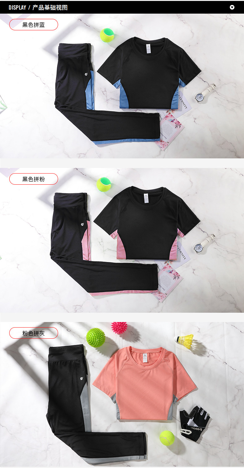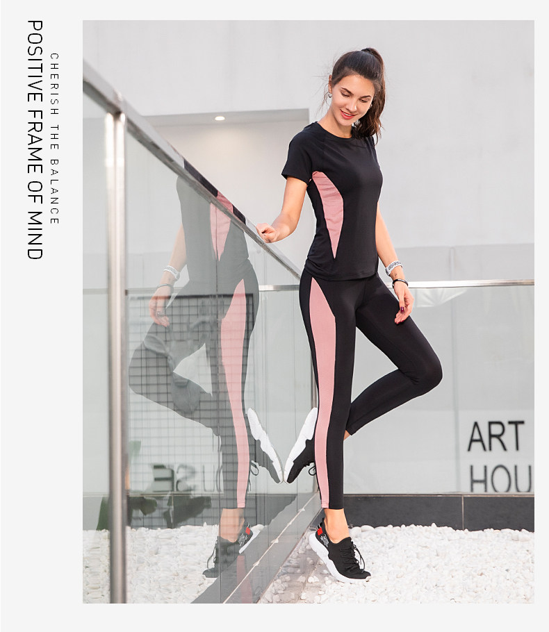 Одежда для йоги, комплект для спортзала, дышащий спортивный костюм, быстрое высыхание, короткий рукав