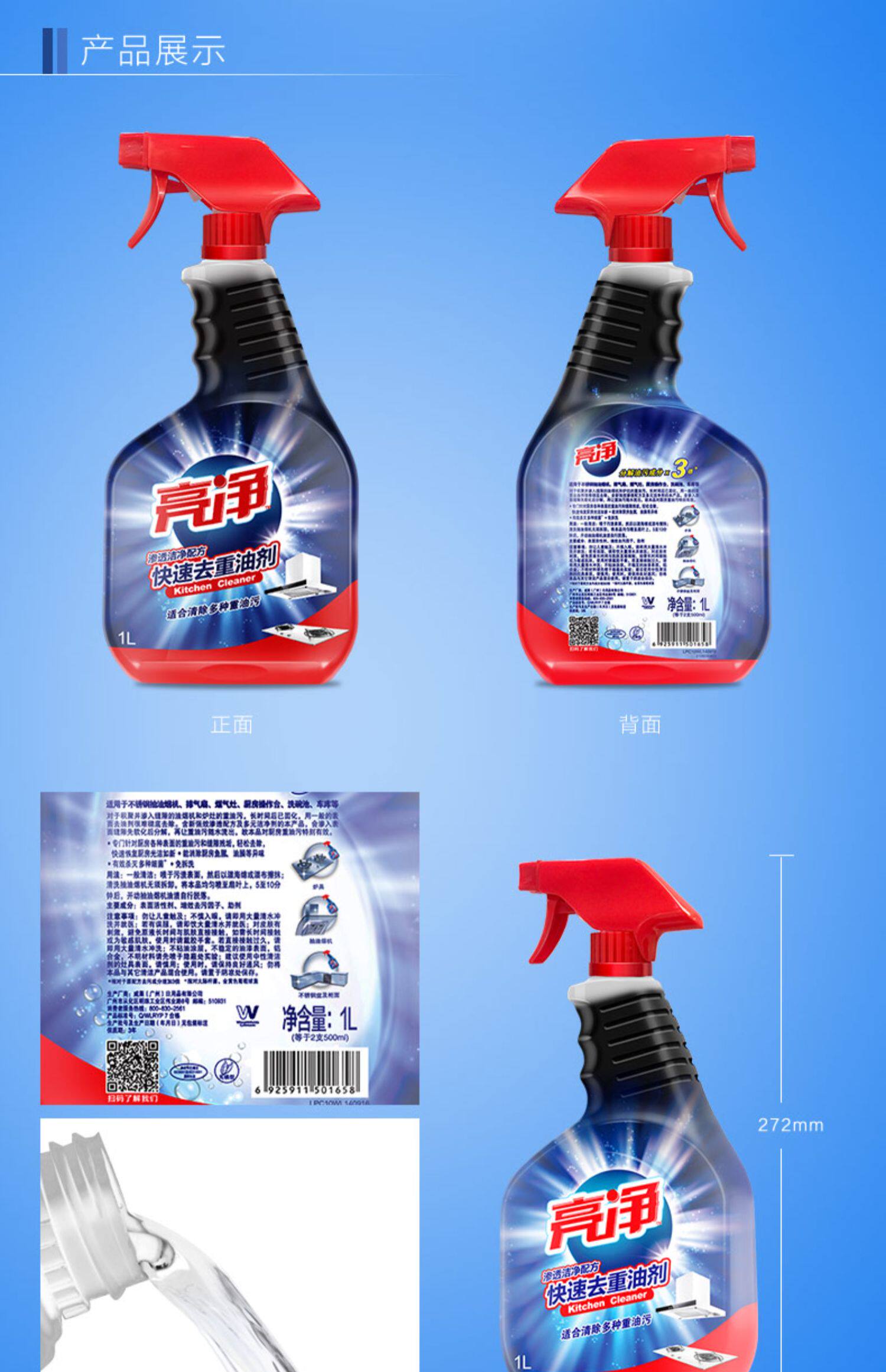 亮净 Освечивание масла кухонная очистка масла мощный очиститель, чтобы удалить тяжелую масляную плиту магического оружия