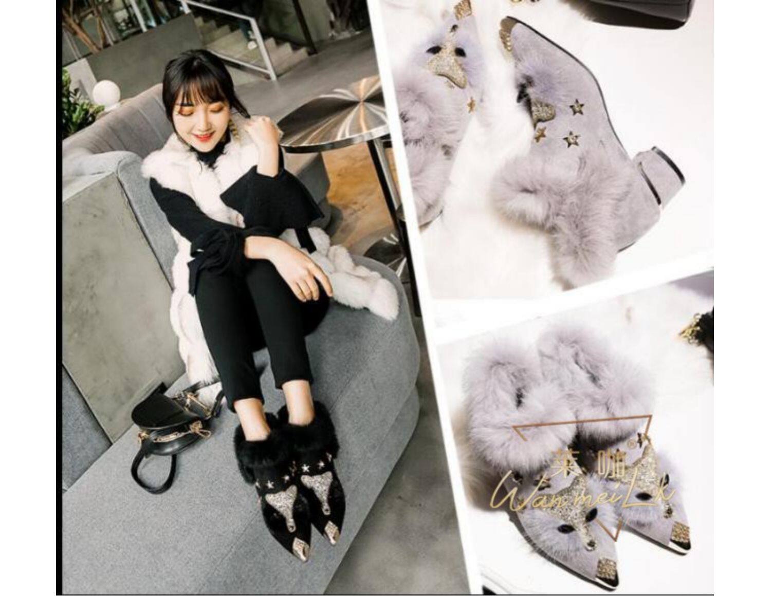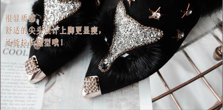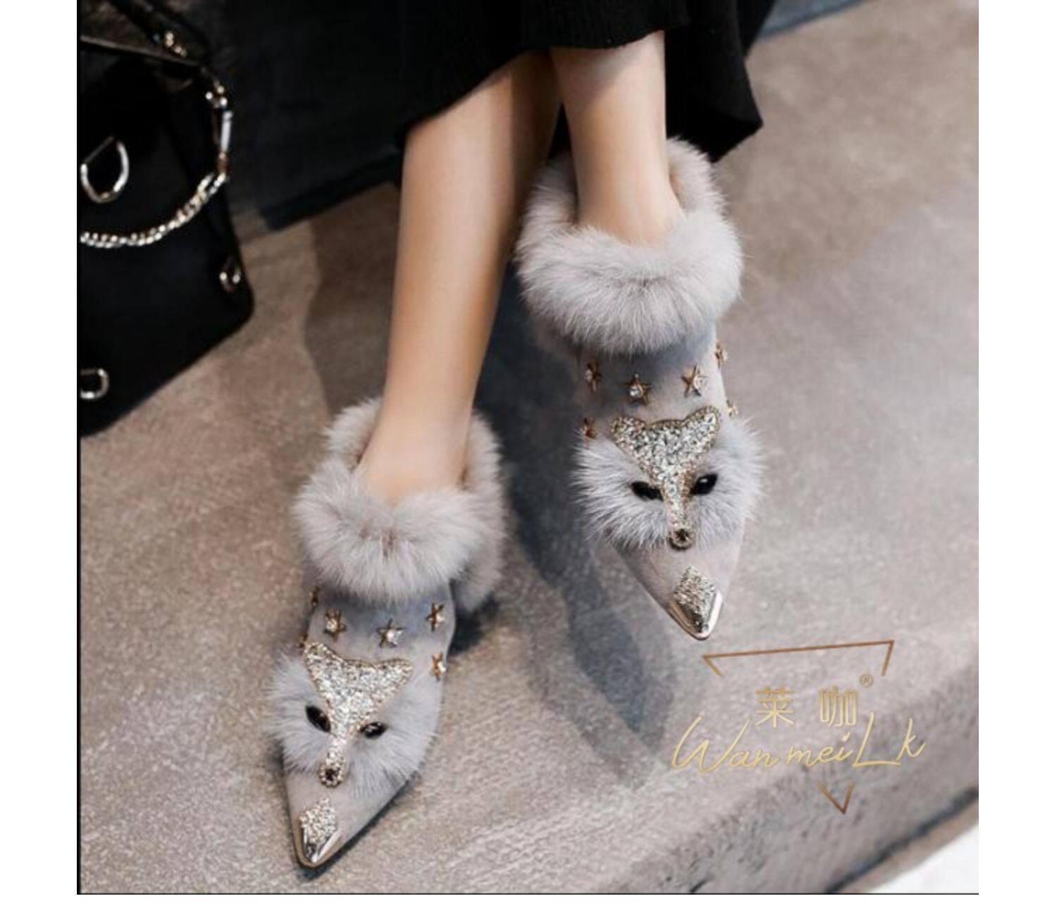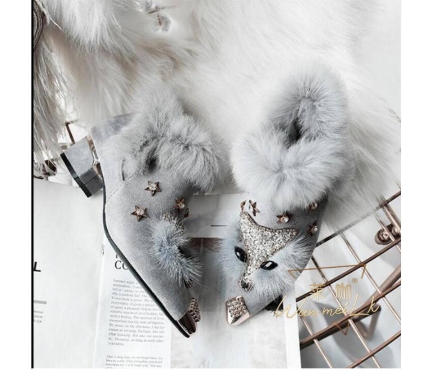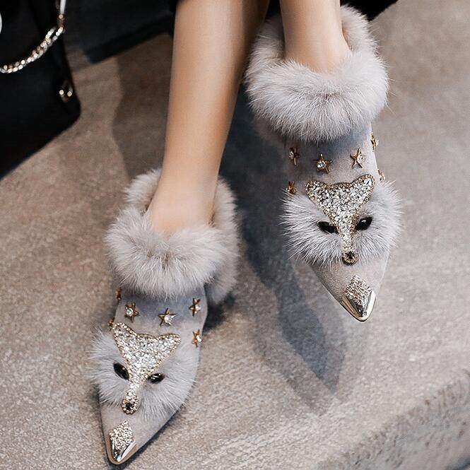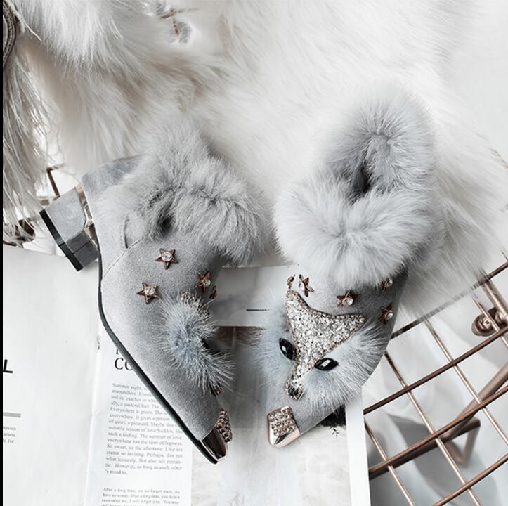 Невидимый увеличил 8 см с тугим ртом, заостренным, страза, головы лиса, снежные ботинки короткие ботинки женские ботинки 6681K