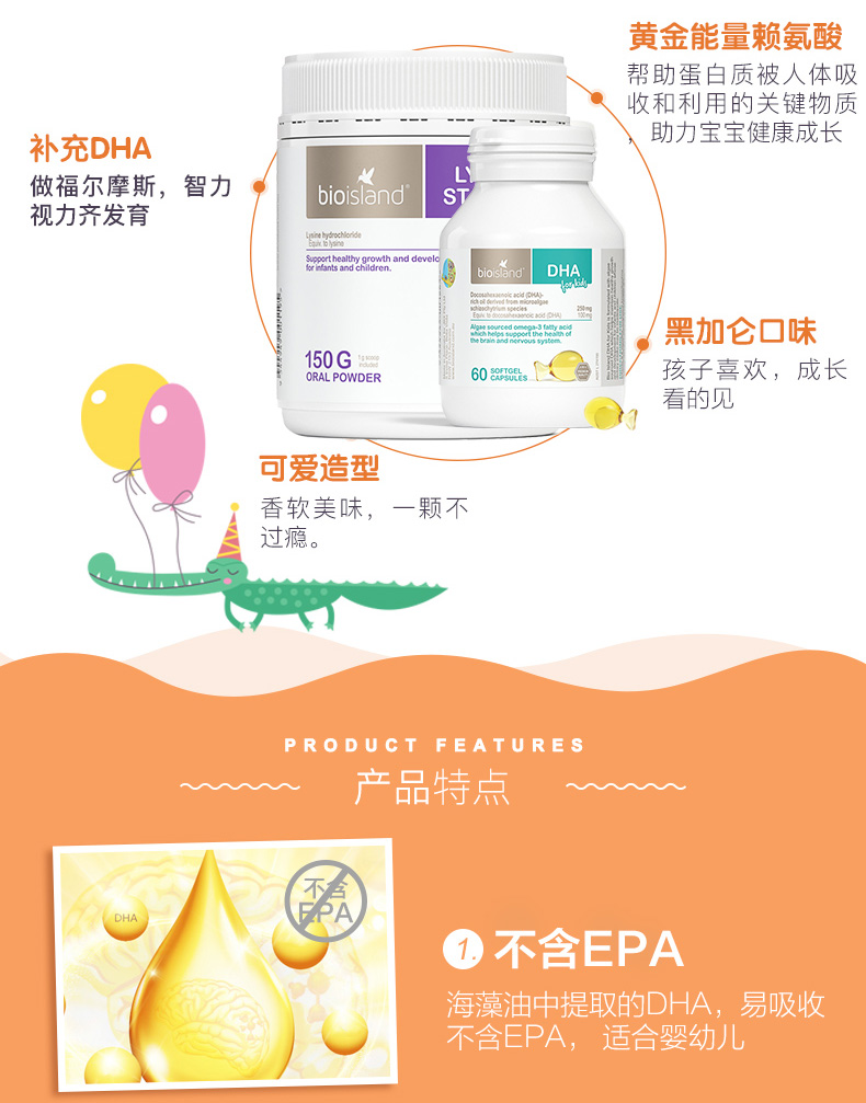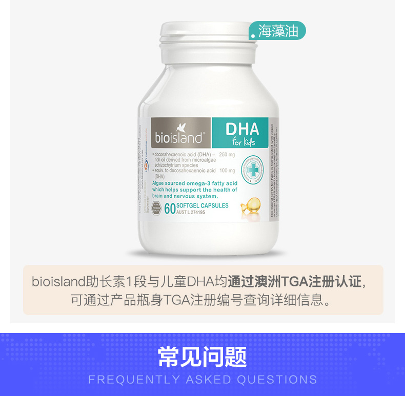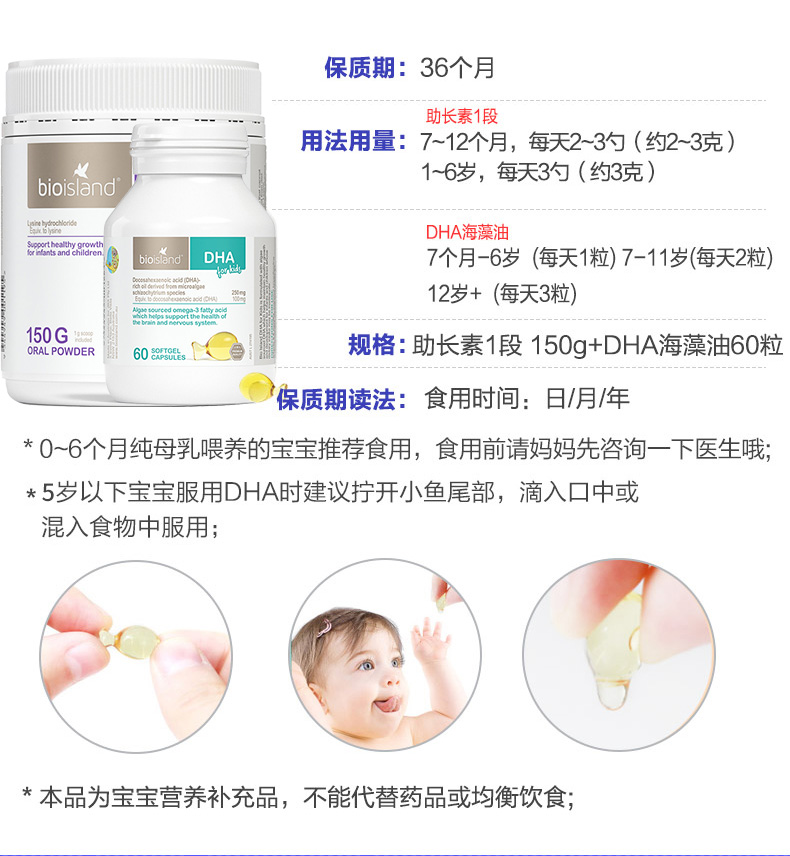 Австралийский био -остров младенец детка детей Золотая помощь элемент 1 абзац+масло морских водорослей DHA