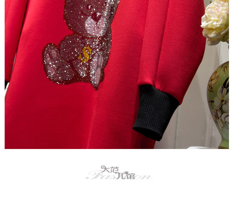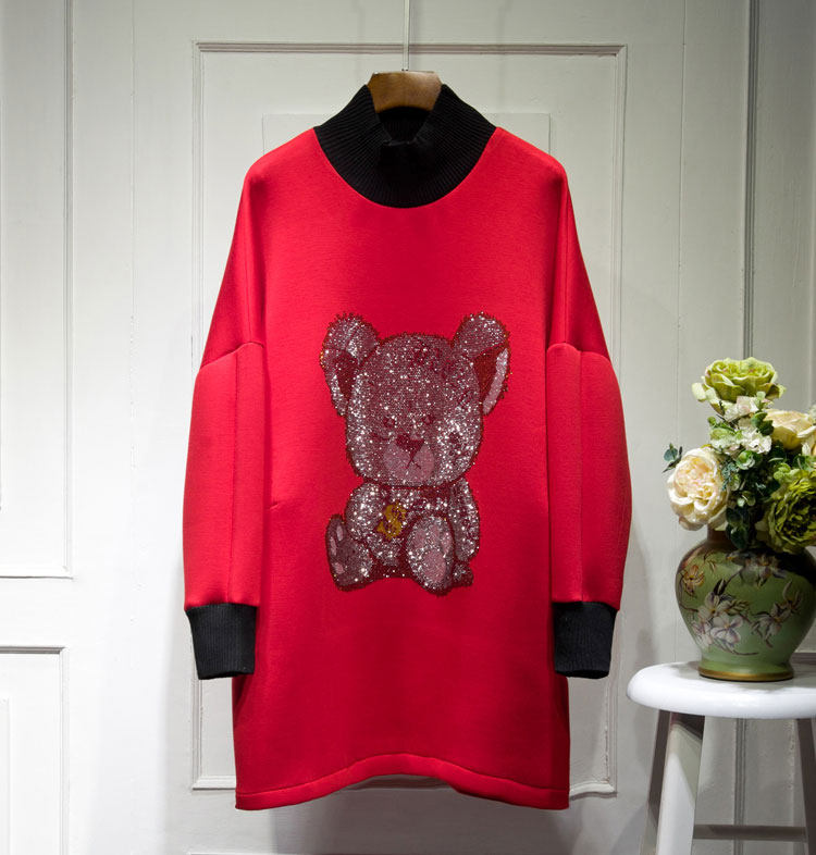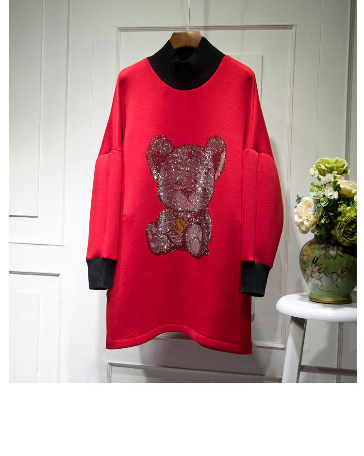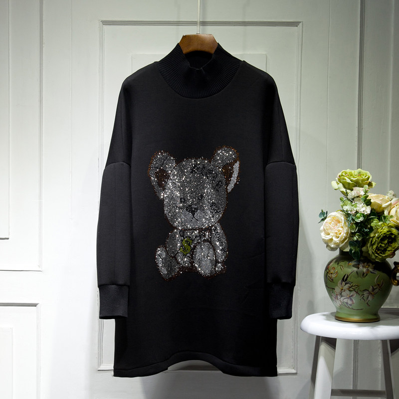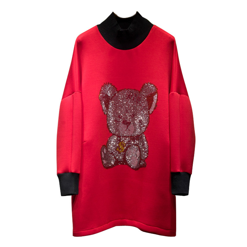 Осеннее платье, длинная толстовка, коллекция 2023, в корейском стиле, с медвежатами, свободный крой, средней длины
