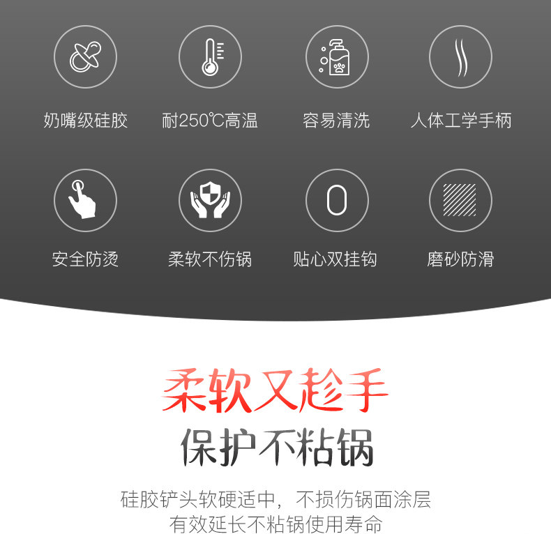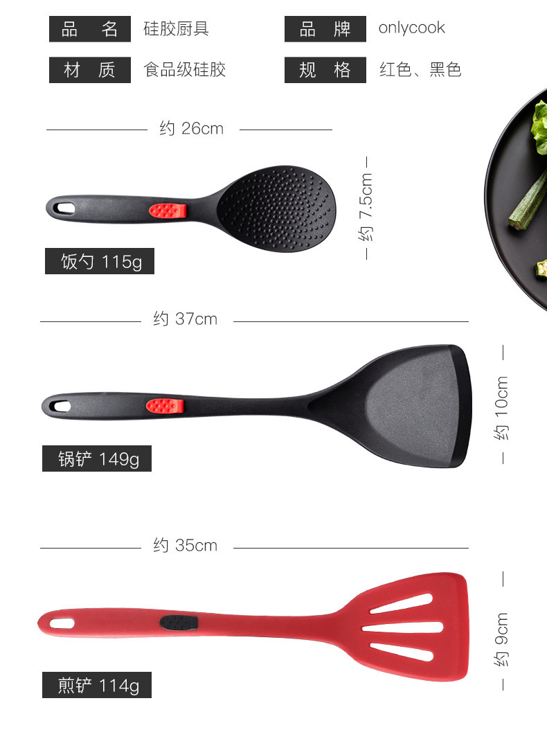 onlycook Устойчивая к высокотемпературному силиконовым шпателям, не -стабильной кастрюле, плоской лопатой жаркой, жареной лопатой, кухонной посудой лопат утечки