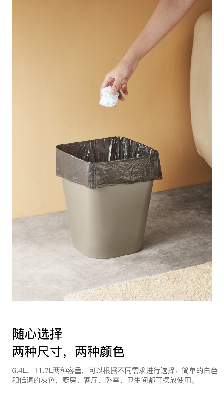 Пластиковое мусорное ведро для домашнего использования для гостиной, простой и элегантный дизайн, увеличенная толщина