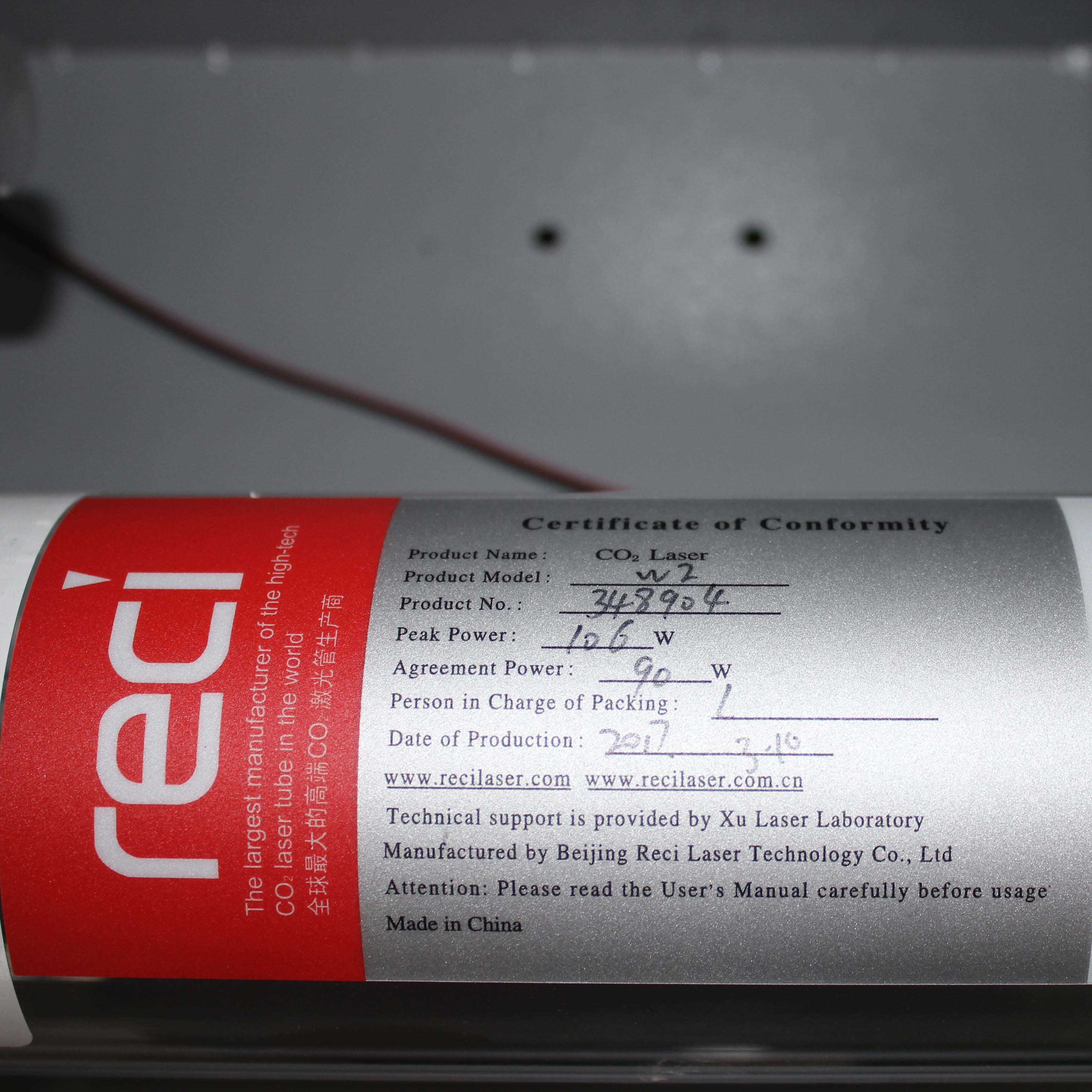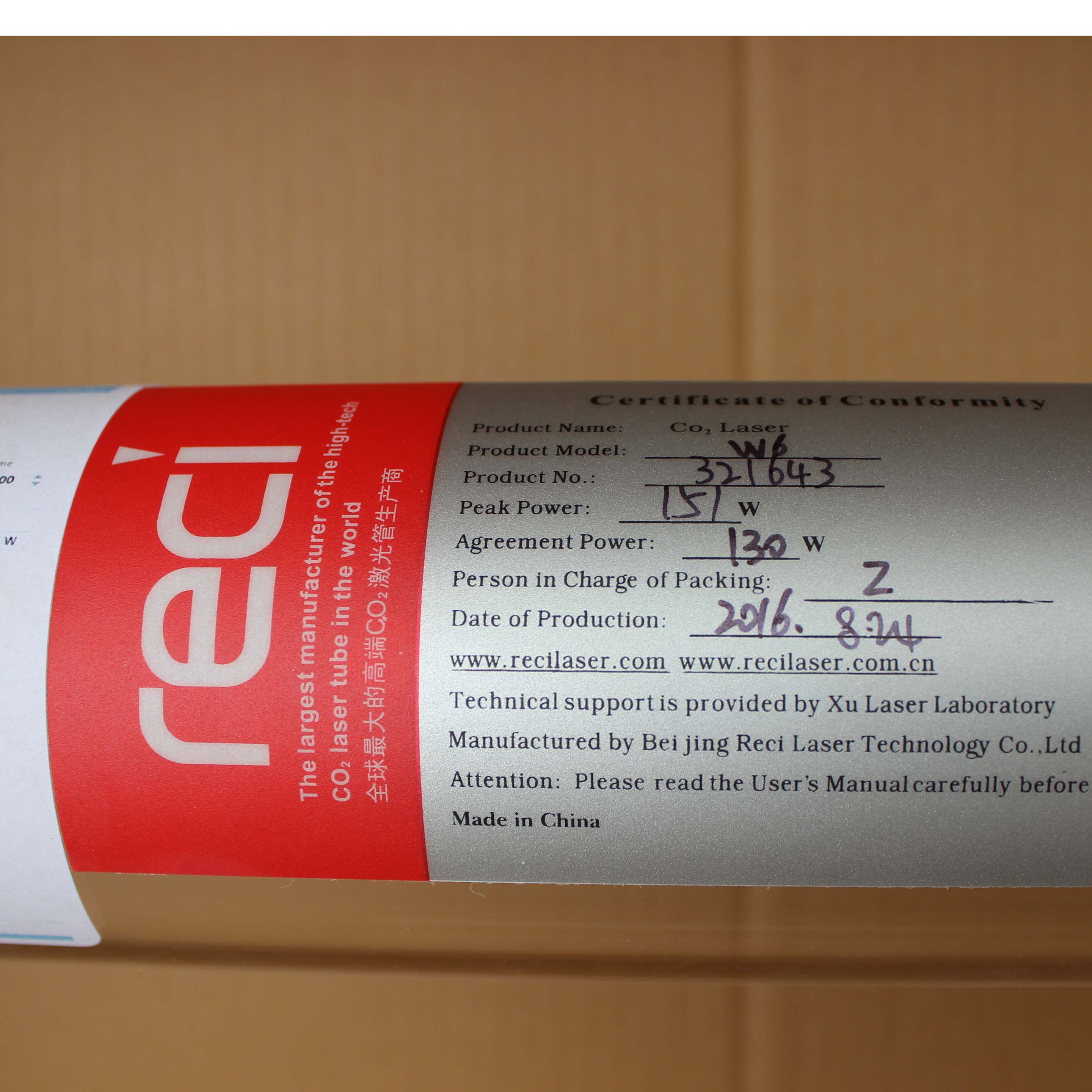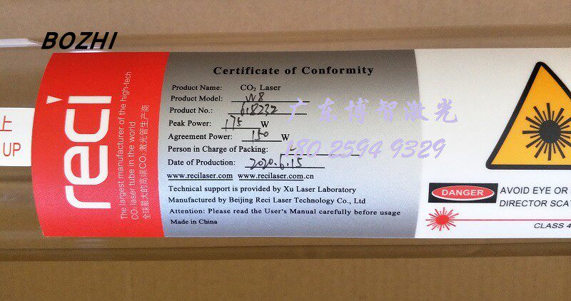 Спецификации лазерных трубок Tottenham Reci следующие